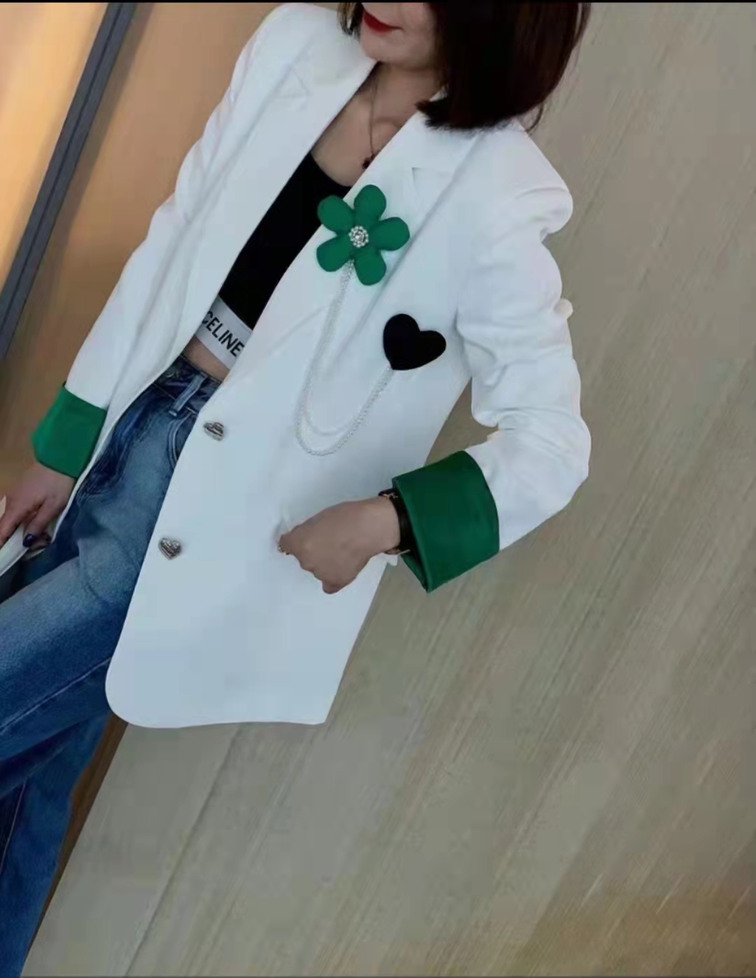 特点:西服外套,时尚减龄,版型宽松,穿着舒适
