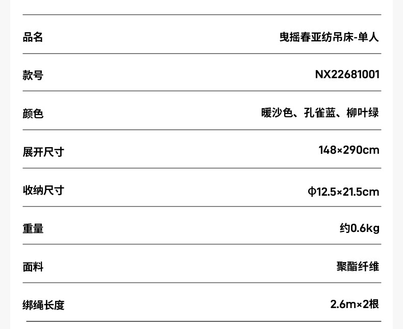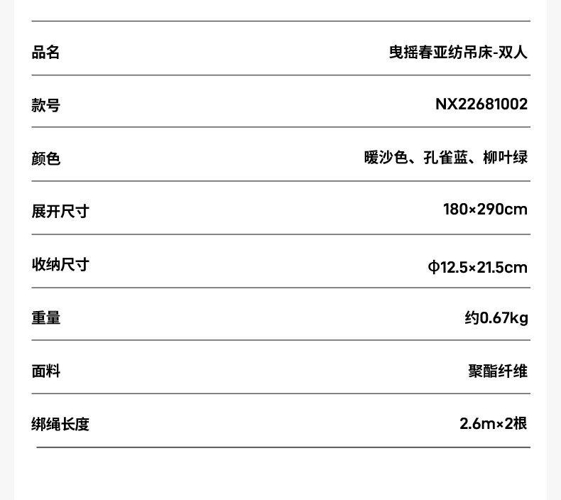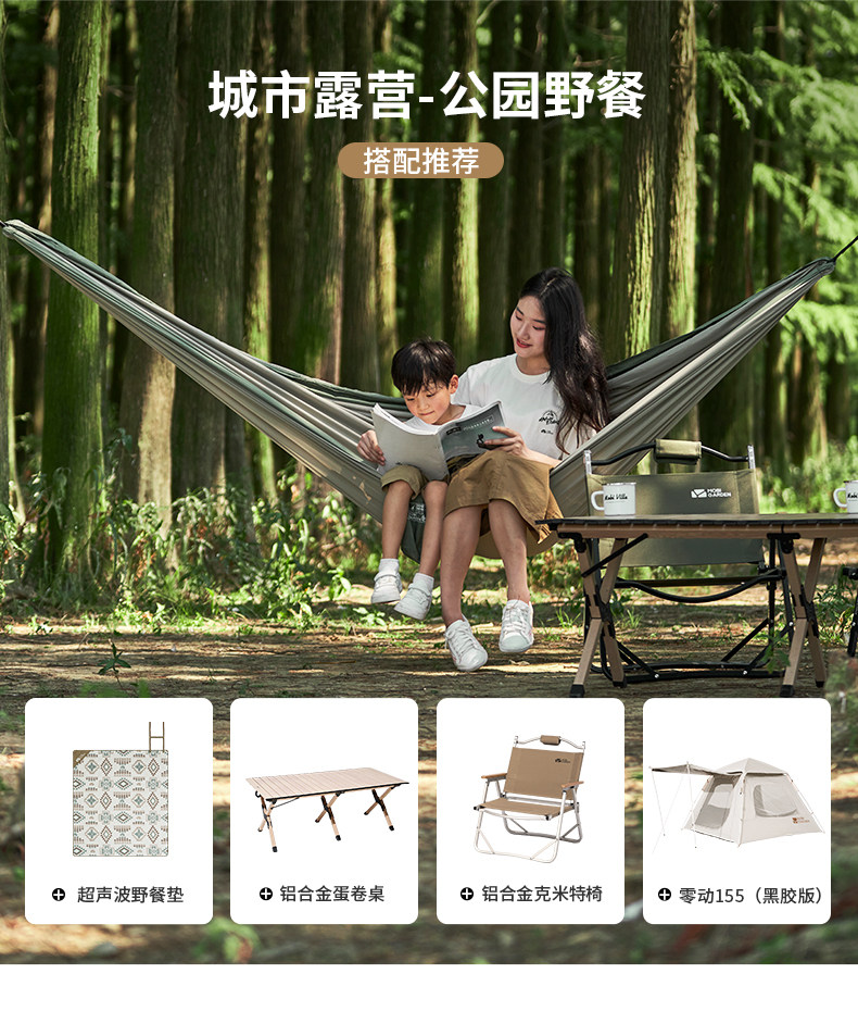 牧高笛曳摇春亚纺吊床户外露营防侧翻双人吊床超轻单人休闲秋千