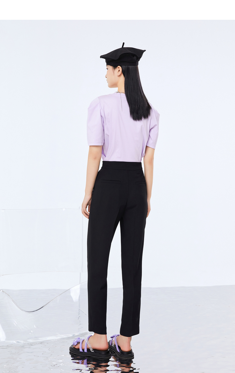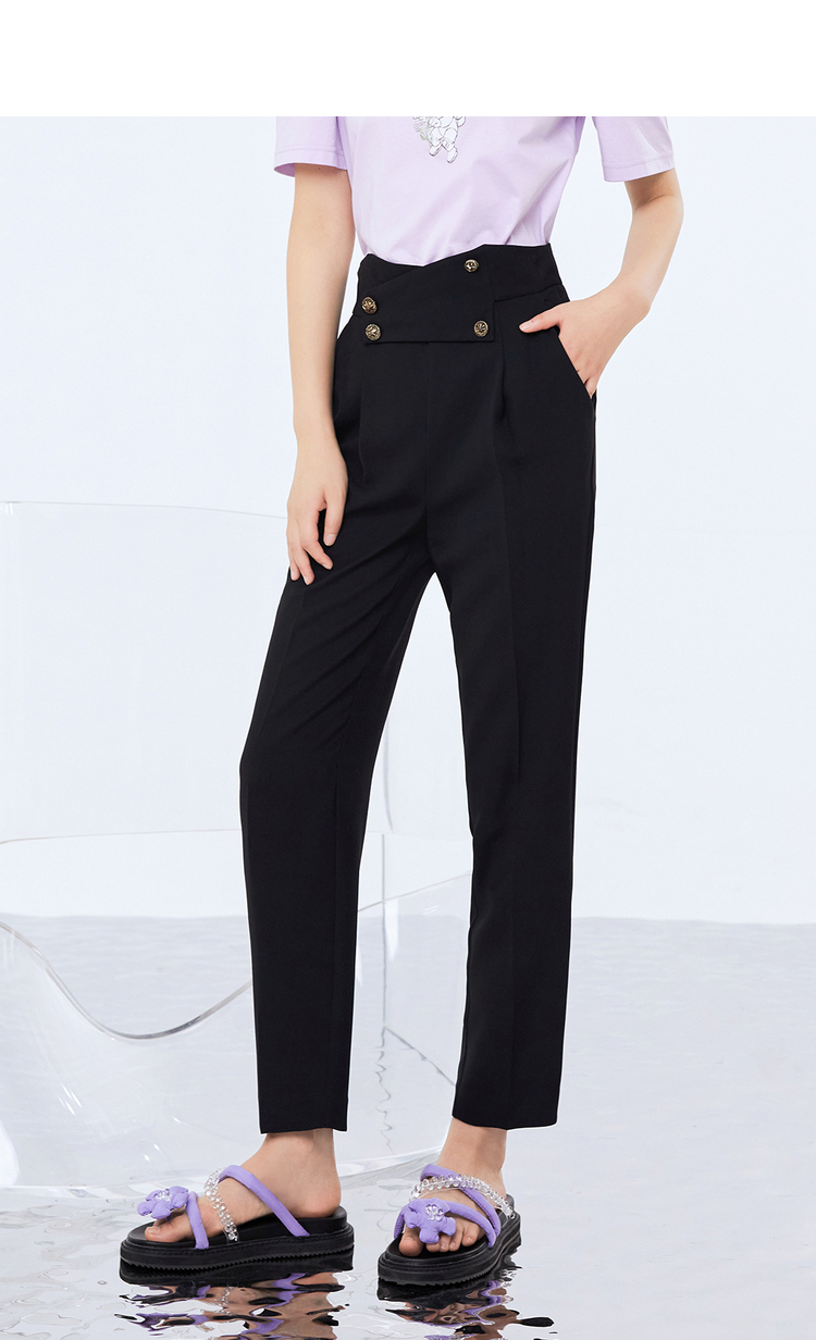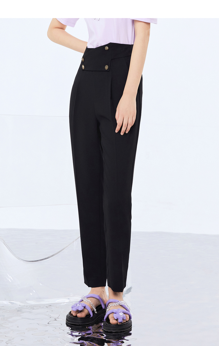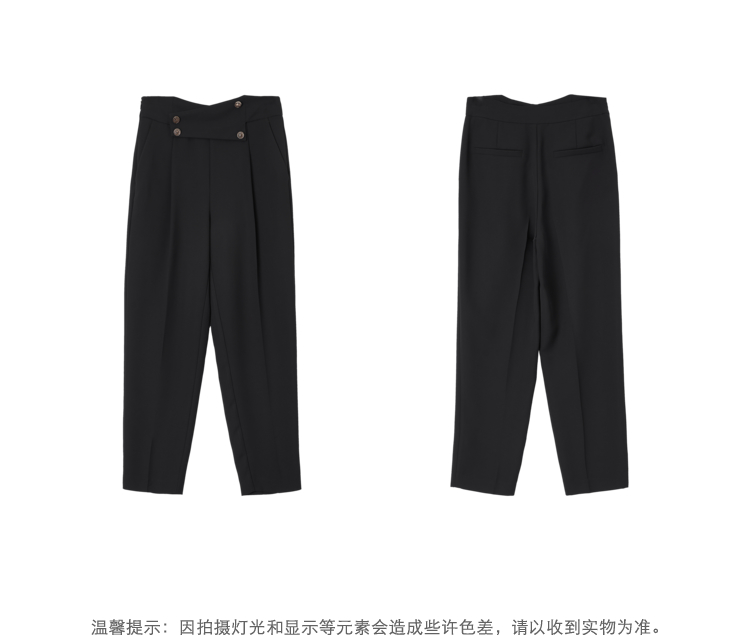NEELLY纳俪新款西装裤女高腰直筒宽松垂感黑色烟管裤显瘦休闲裤N21071H01028