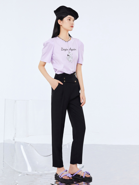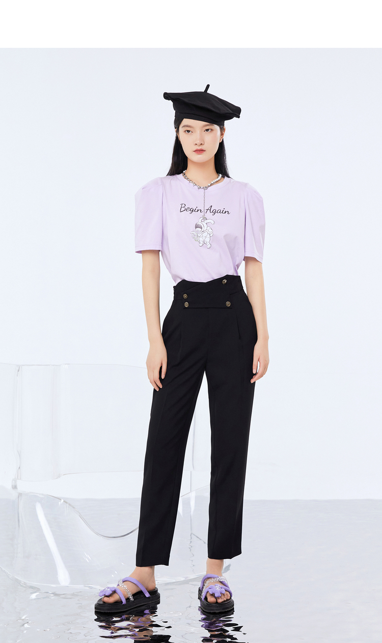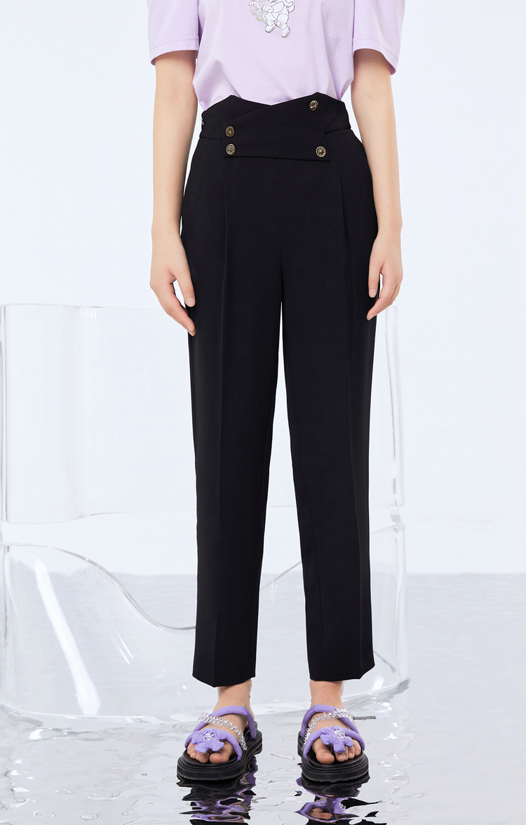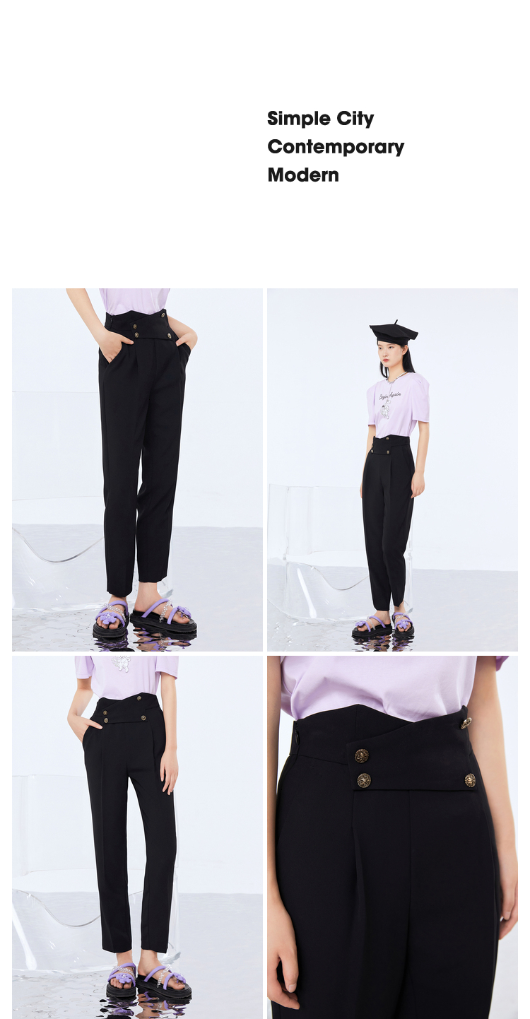NEELLY纳俪新款西装裤女高腰直筒宽松垂感黑色烟管裤显瘦休闲裤N21071H01028