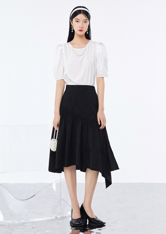 NEELLY纳俪商场同款高腰半身裙女中长款下开叉设计A字裙百搭时尚N22102E01061
