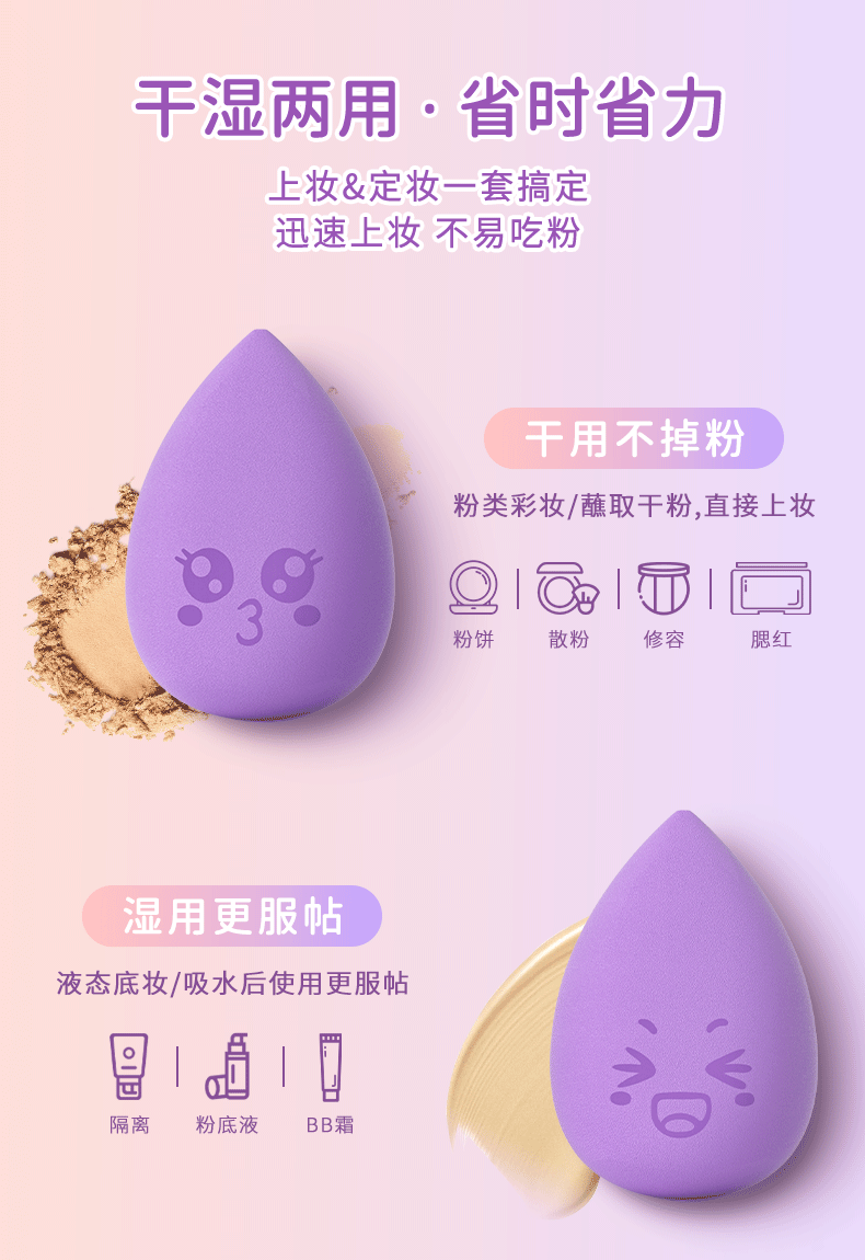 柒小仙笑颜Q弹彩妆蛋 可爱表情粉扑不吃粉化妆美妆蛋