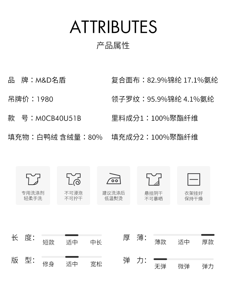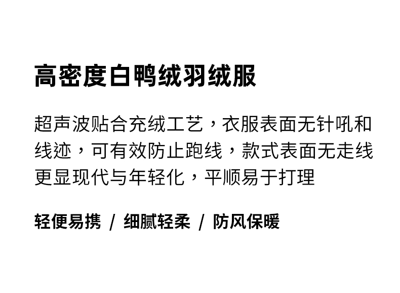 | 领型: 无帽立领 | 填充物: 白鸭绒 |
