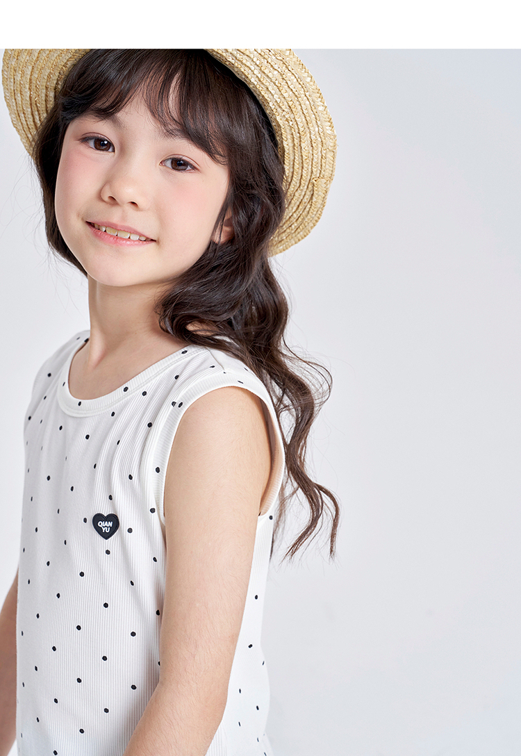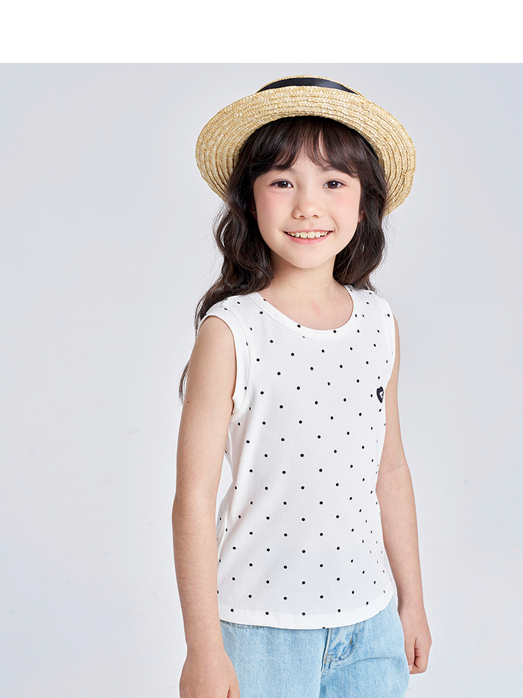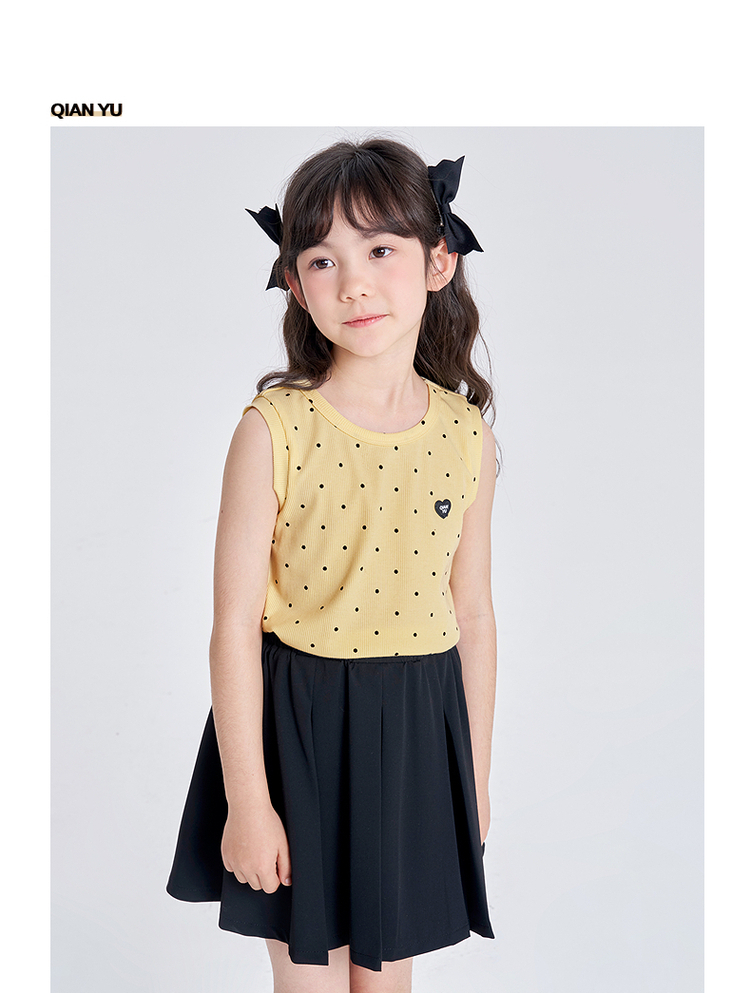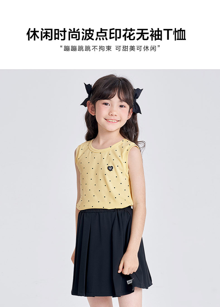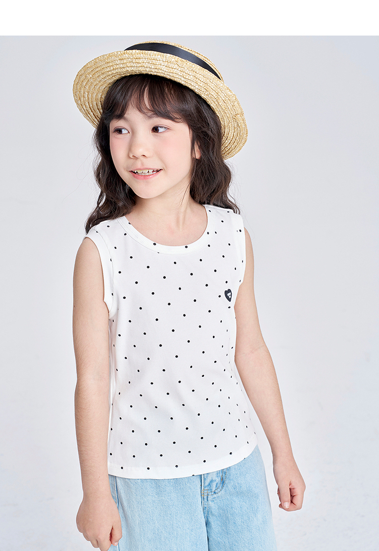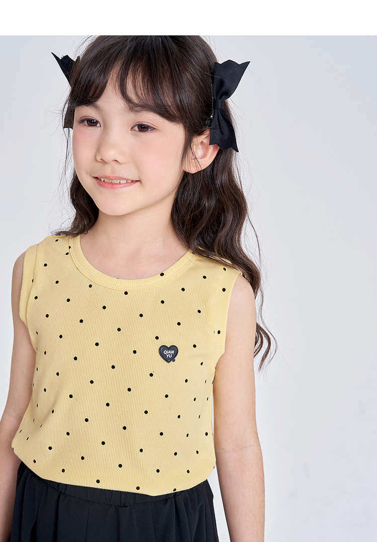 笛莎千与2025夏季新款女童休闲时尚波点印花无袖T恤