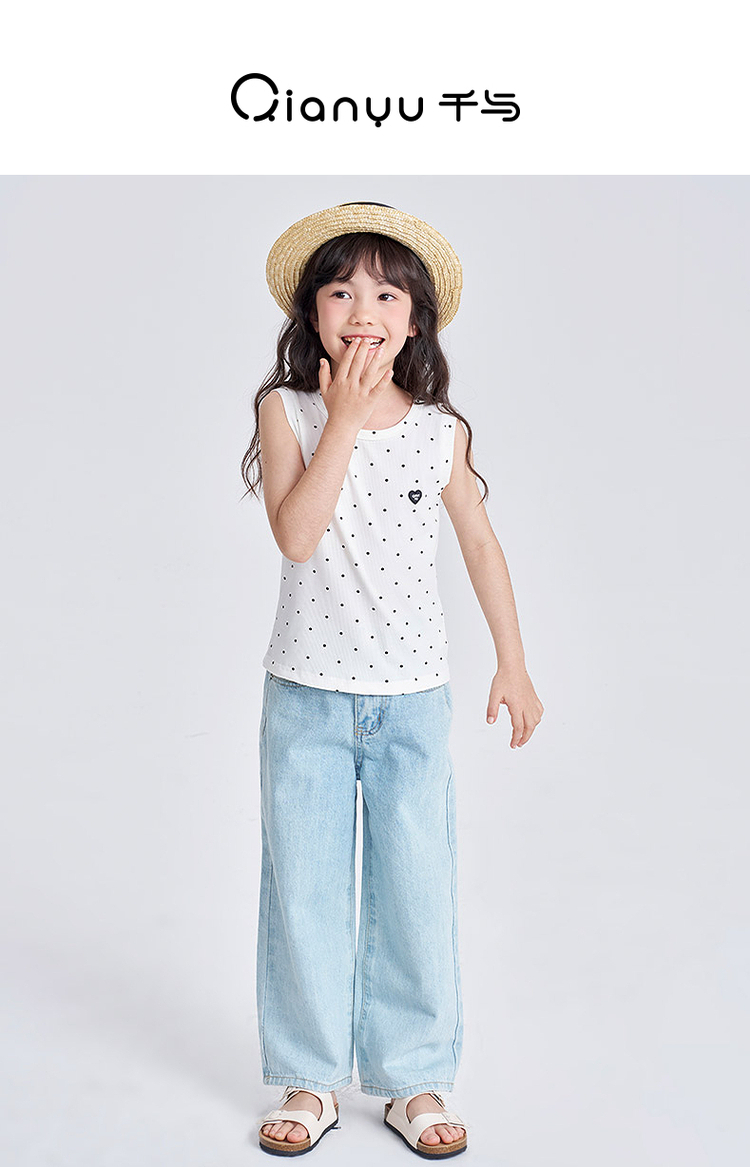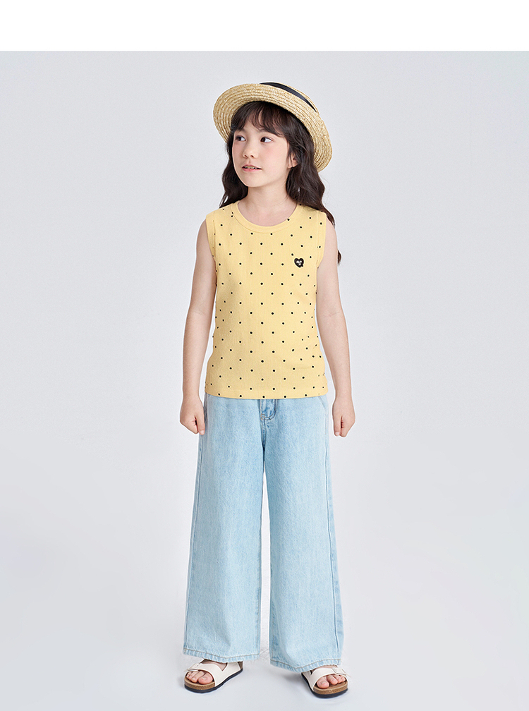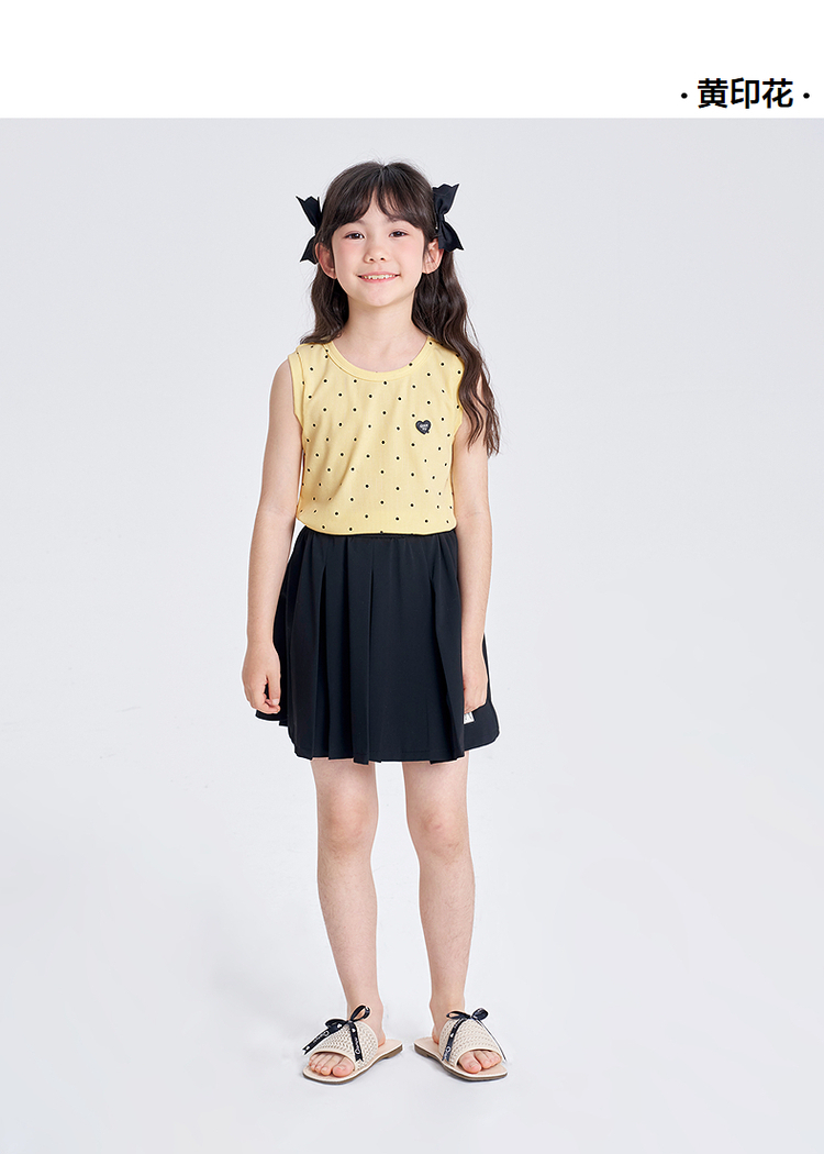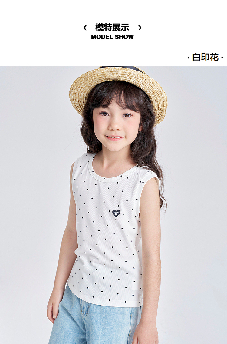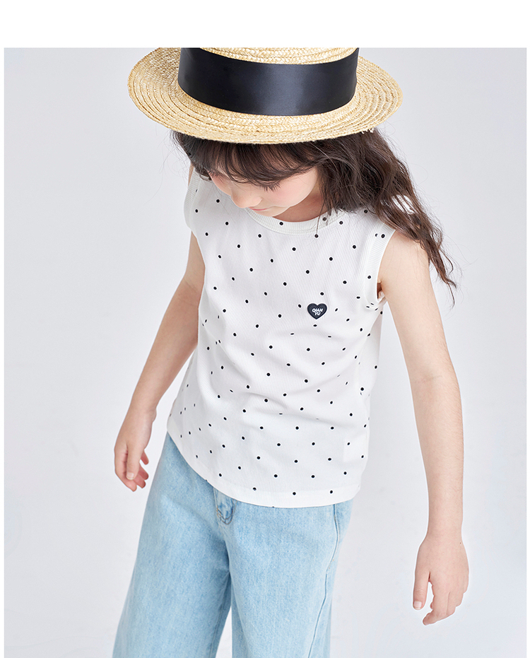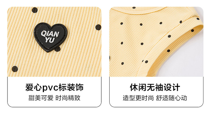 笛莎千与2025夏季新款女童休闲时尚波点印花无袖T恤