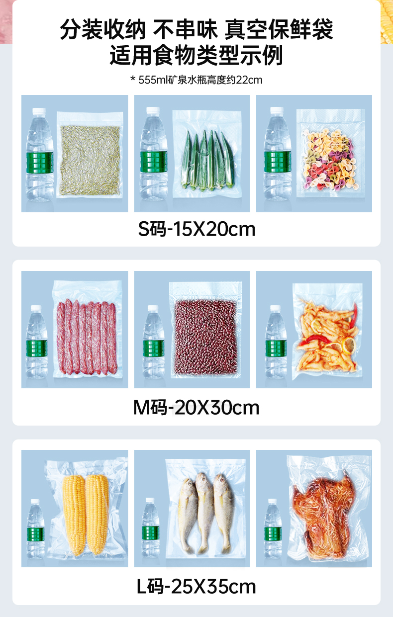 【3包150只】Grarey 格瑞亚 真空保鲜袋 保鲜防串味 延长食物保鲜 S+M+L 3个尺寸 A-3284