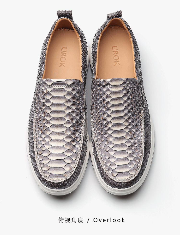 【21春夏新品】UROK新款蟒蛇皮男士防滑耐磨乐福鞋个性时尚潮流男鞋