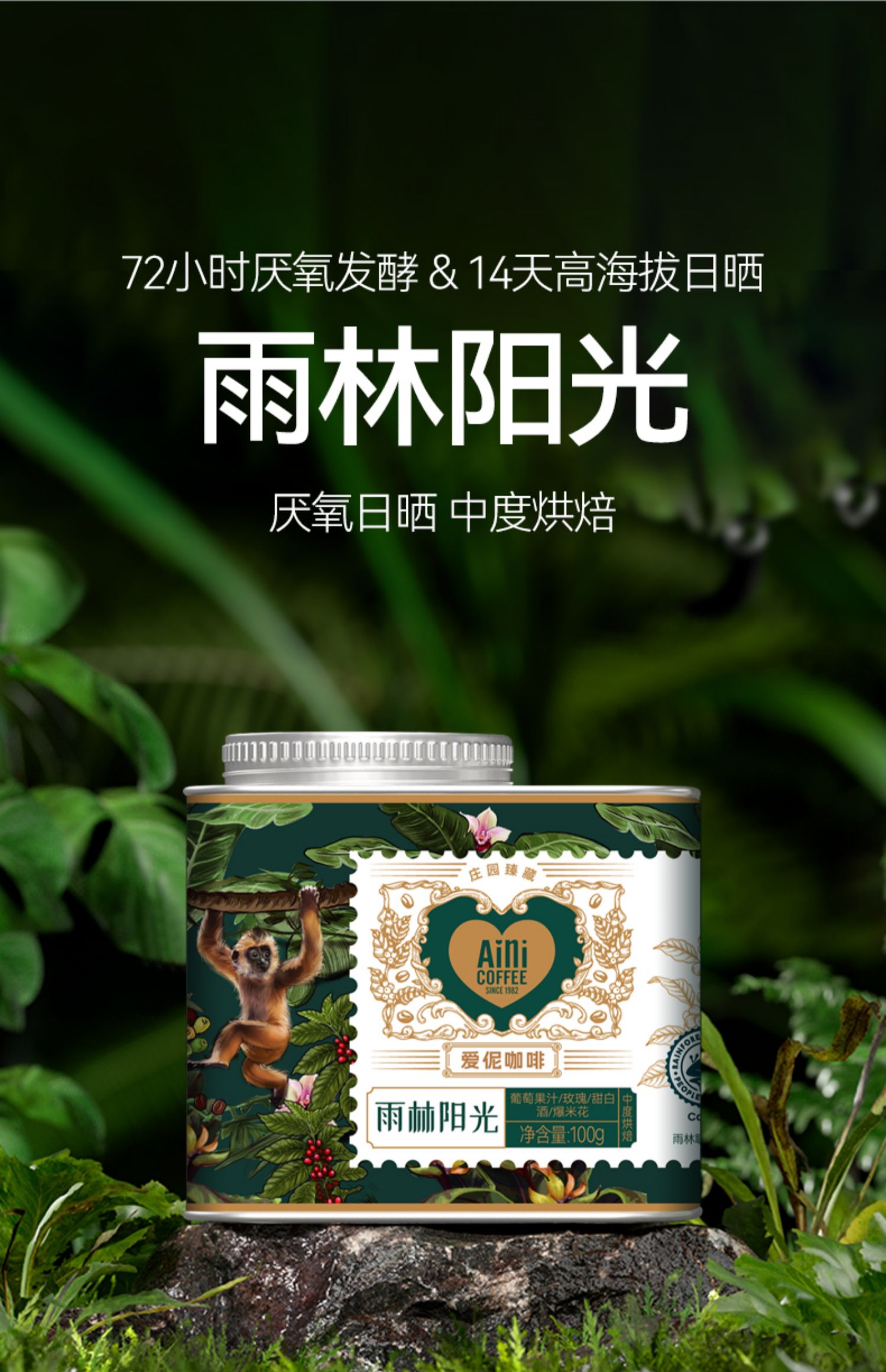 爱伲庄园 精品咖啡豆 雨林阳光 中度烘焙 有机雨林联盟认证 云南小粒咖啡 铁罐装100g