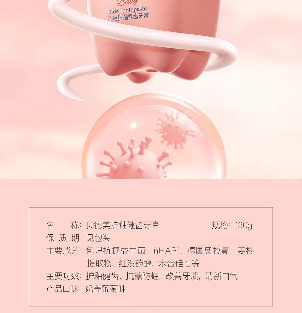 贝德美儿童奥拉氟牙膏益生菌防蛀防龋齿抗糖