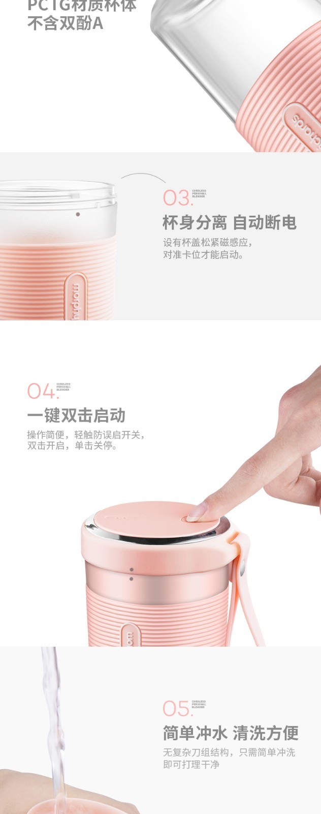 【一般贸易】【李佳琪推荐】摩飞充电便携式榨汁机MR9600 小型家用榨汁杯迷你料理水果汁机 蓝色