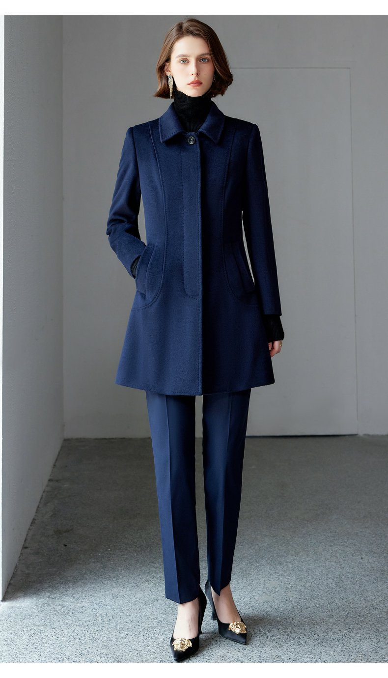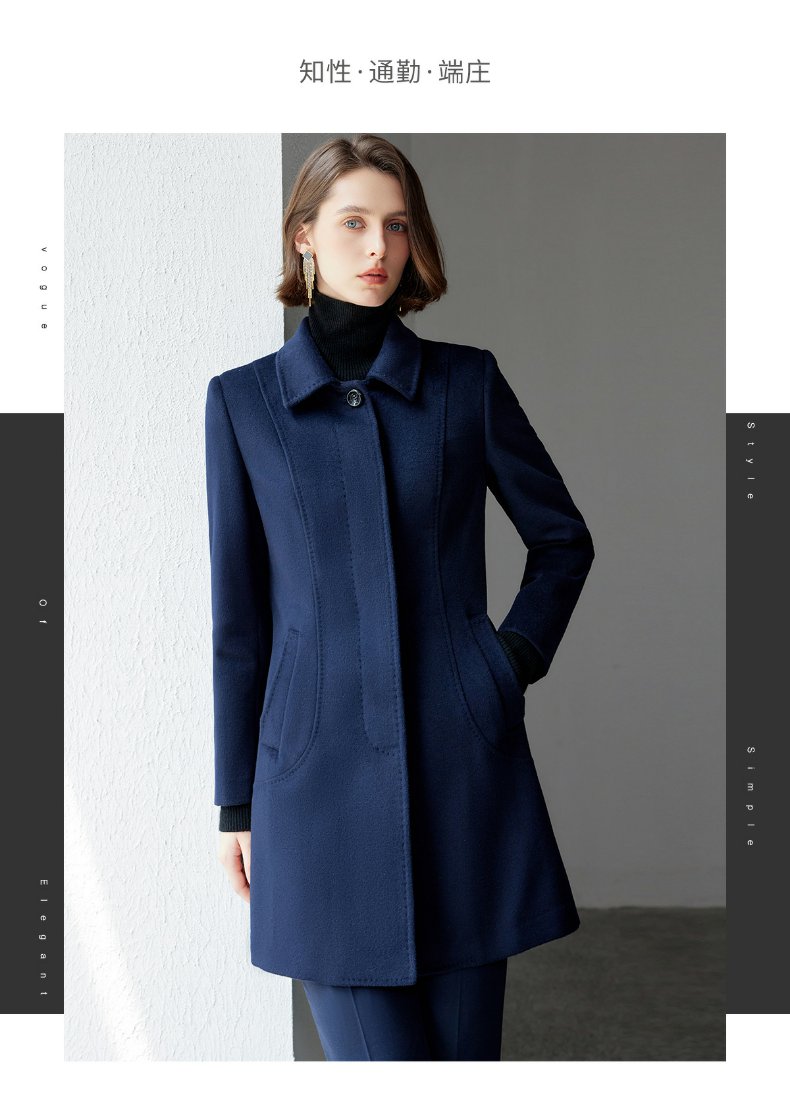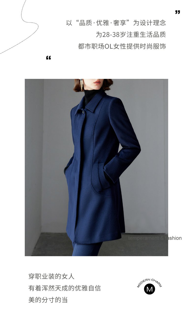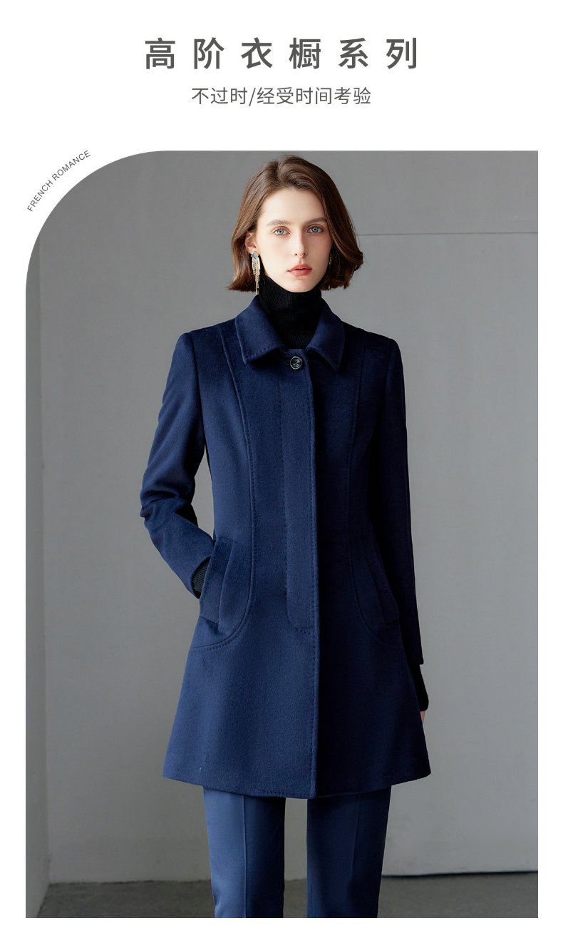IWY/藏青色羊毛大衣女双面毛呢外套秋冬物业工服ND9020