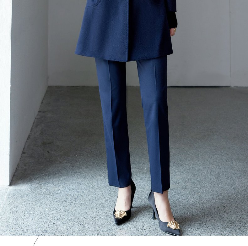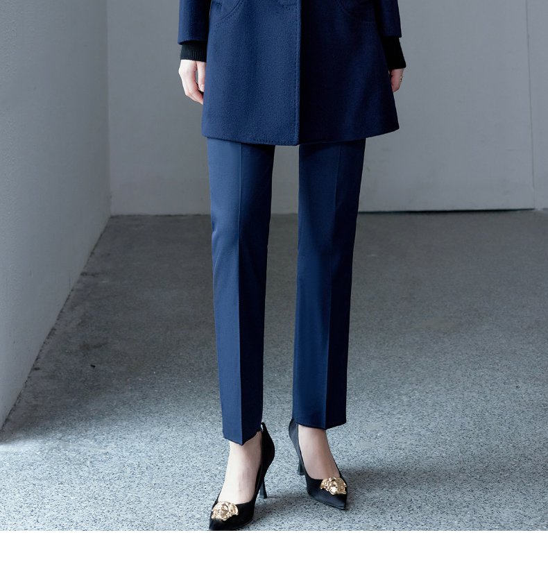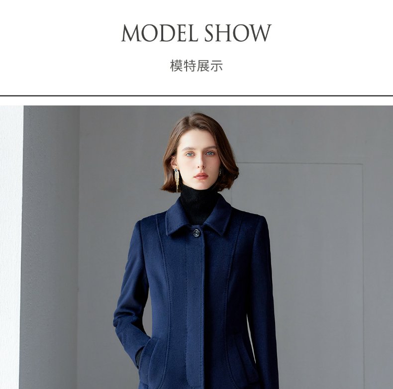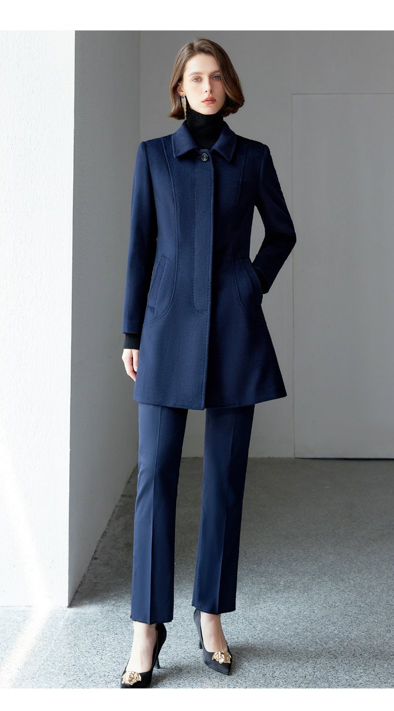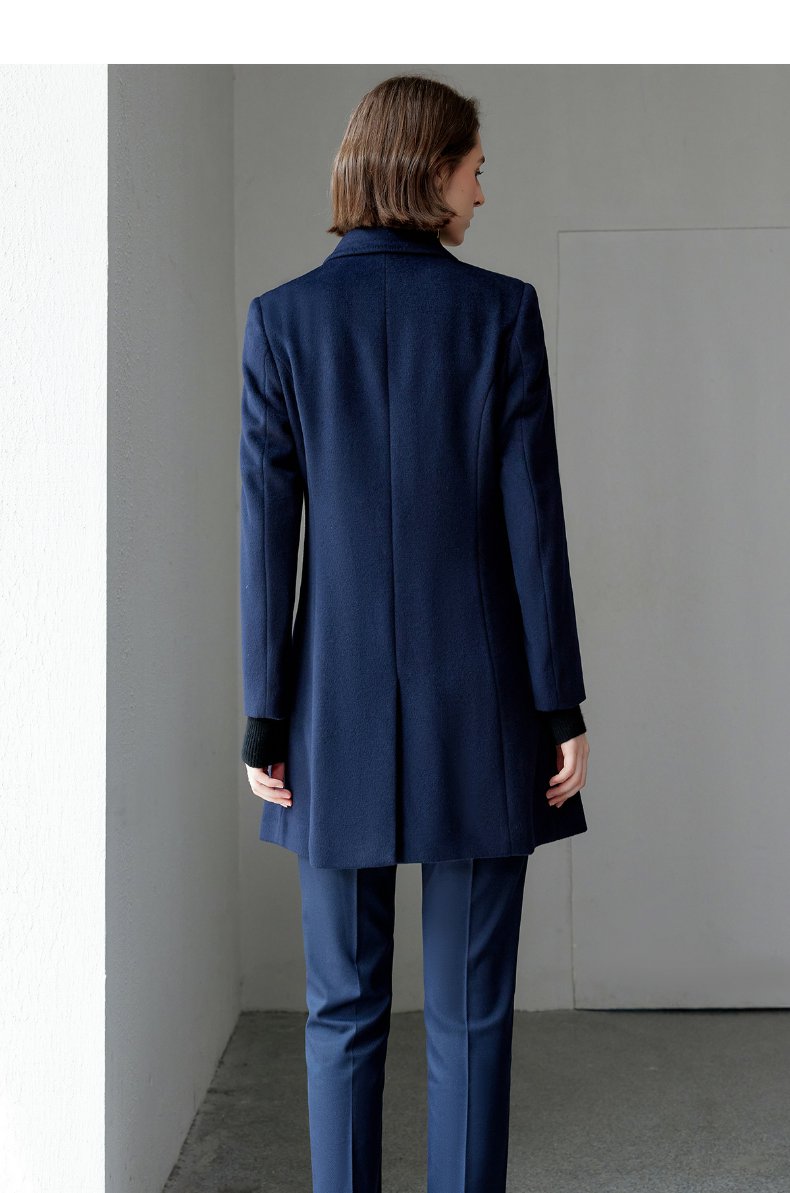 IWY/藏青色羊毛大衣女双面毛呢外套秋冬物业工服ND9020