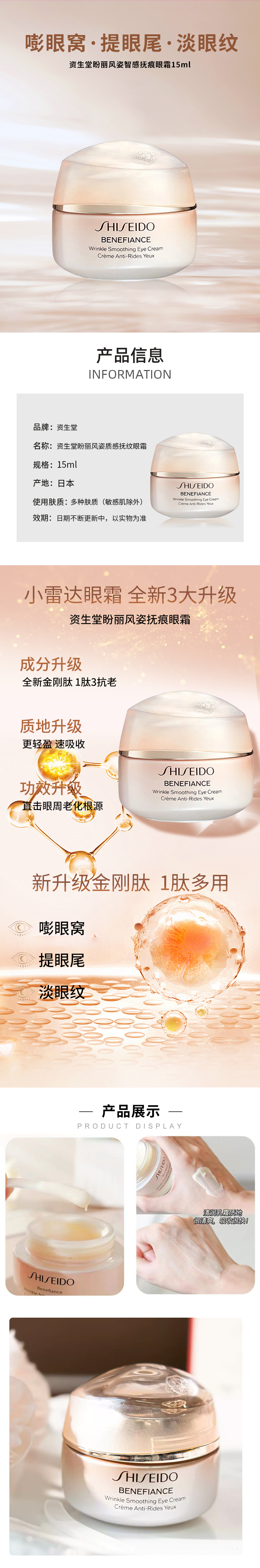 【1件包邮】资生堂盼丽风姿智感抚痕眼霜15ml 抗皱小雷达淡化眼纹 甘肃/青海/内蒙古/新疆/西藏/宁夏/海南/港澳台不发货