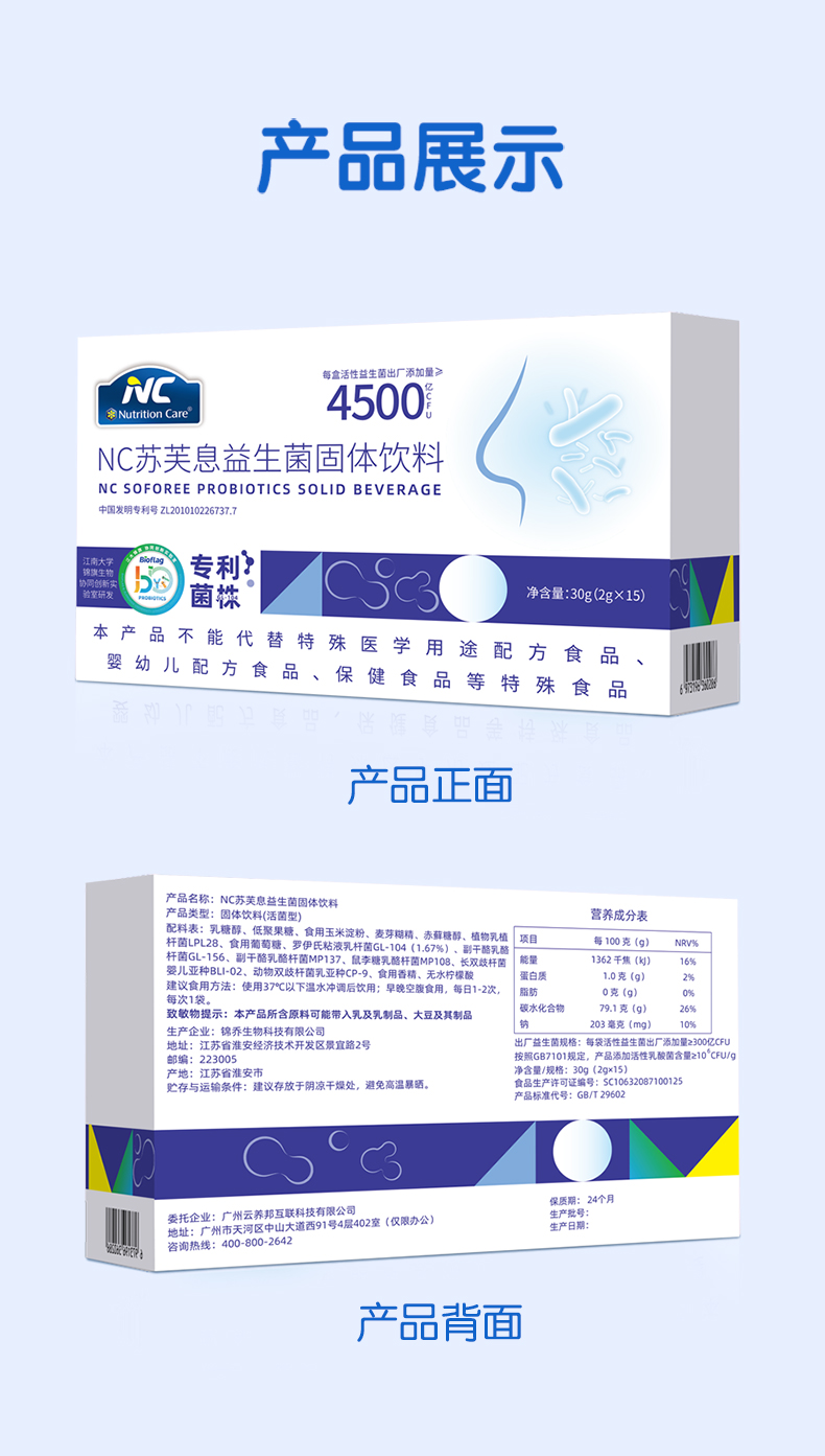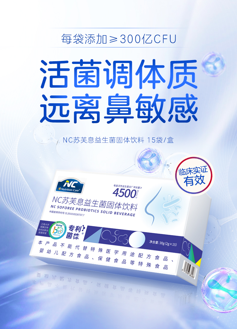 3盒 NC苏芙息益生菌固体饮料 30g(2g*15)3盒赠喷雾 A-5577(效期26-9)