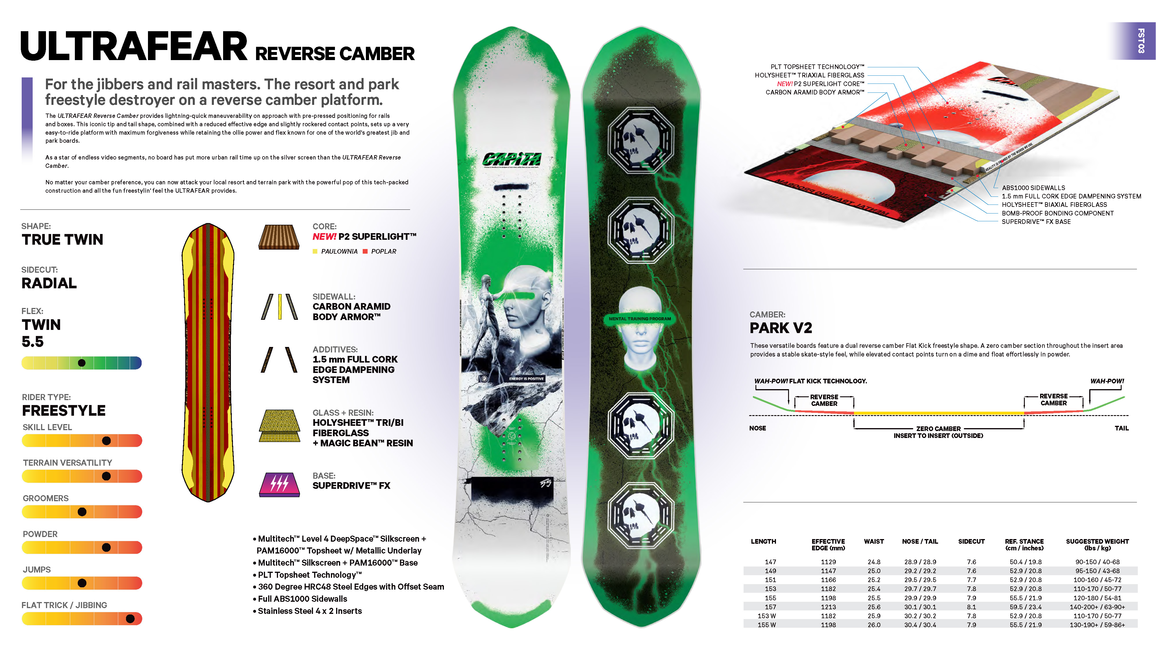 Capita 23-24 【ULTRAFEAR】 FREESTYLE 自由式及公园雪板 155