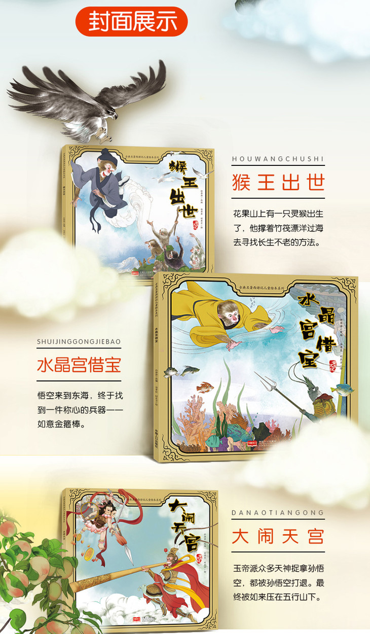 古典名著西游记儿童绘本系列(全10册)猴王出世+水晶宫借宝+大闹天宫+三打白骨精+三借芭蕉扇+真假美猴王+宝象国+女儿国+偷吃人参果+红孩儿+
