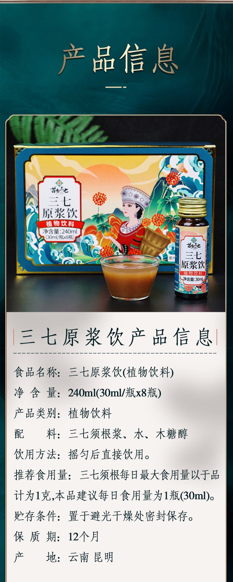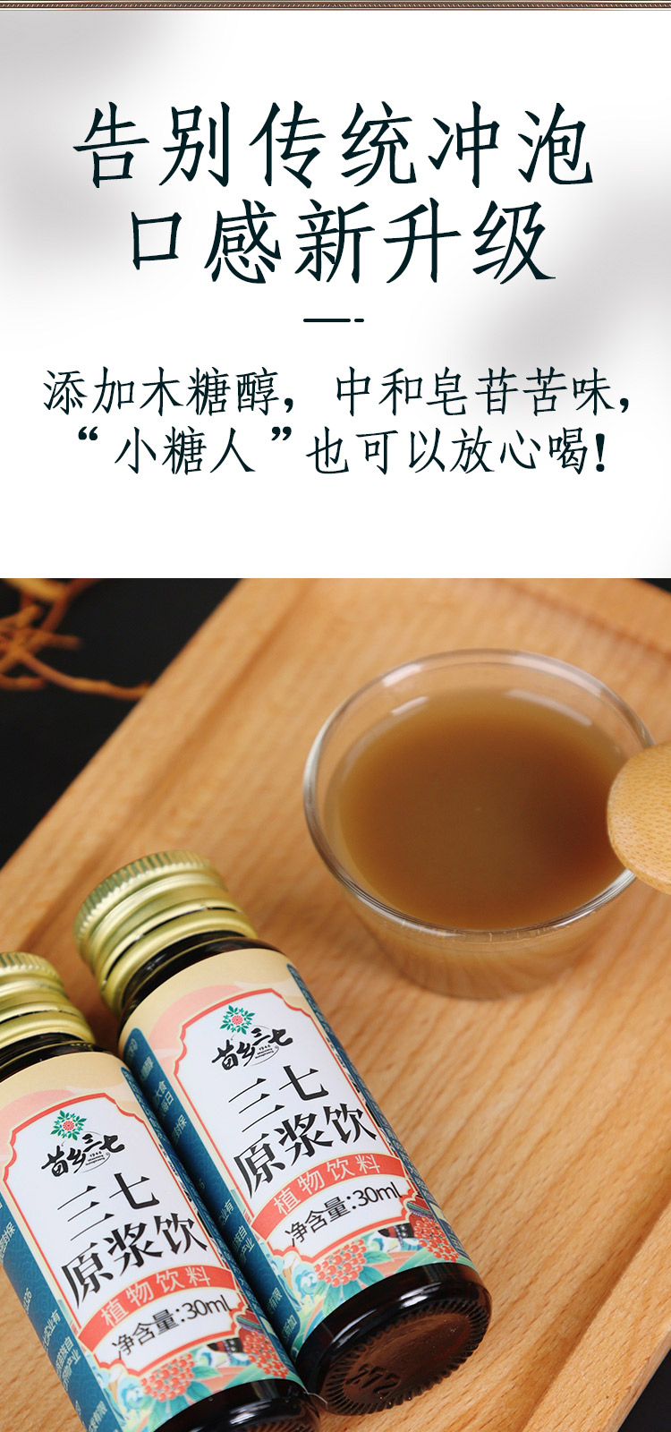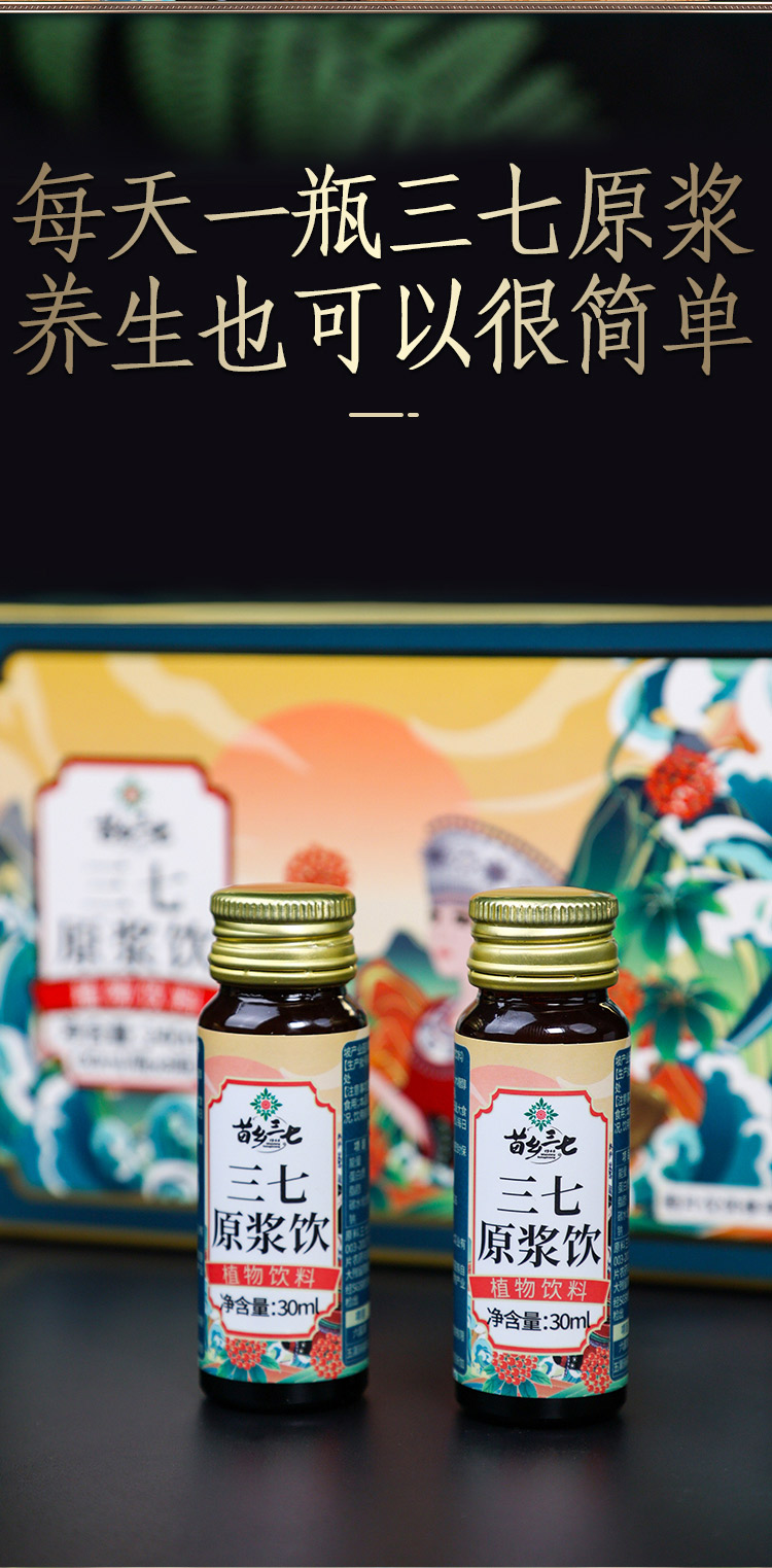 苗乡三七 三七原浆饮30ml*8瓶植物饮料三七须根 无公害三七鲜三七须根