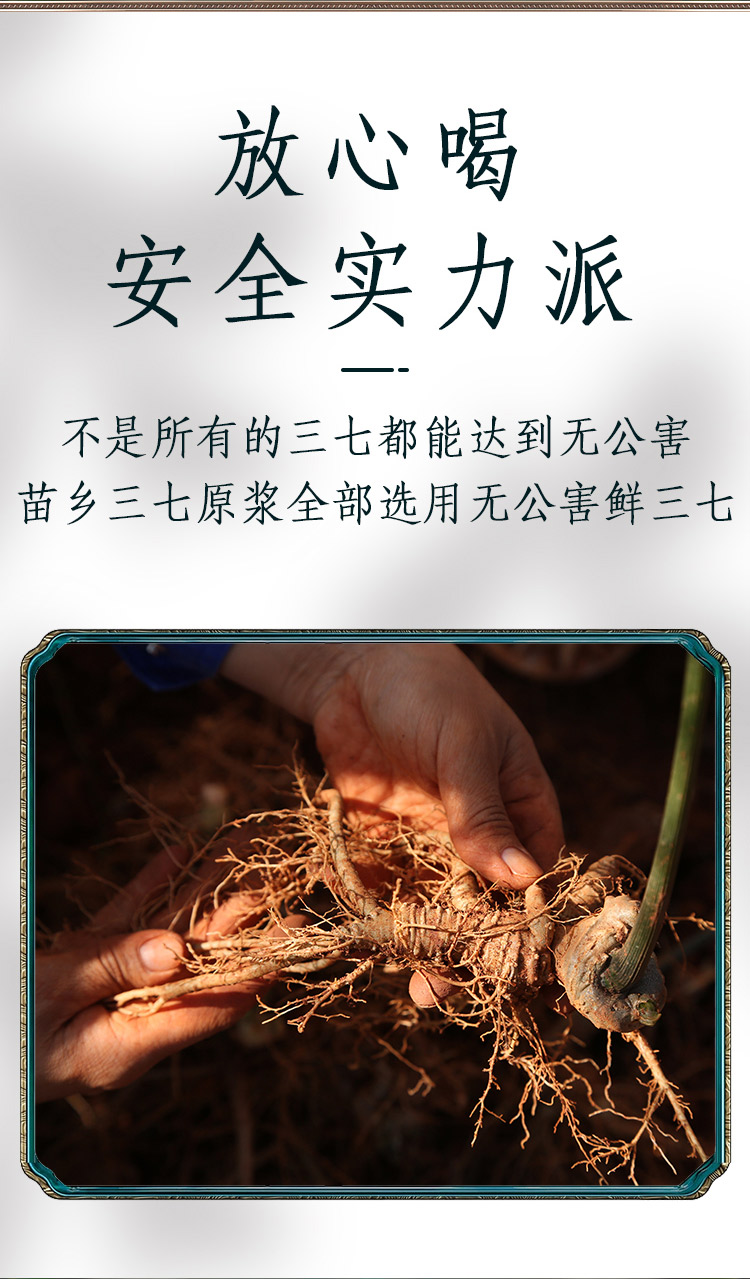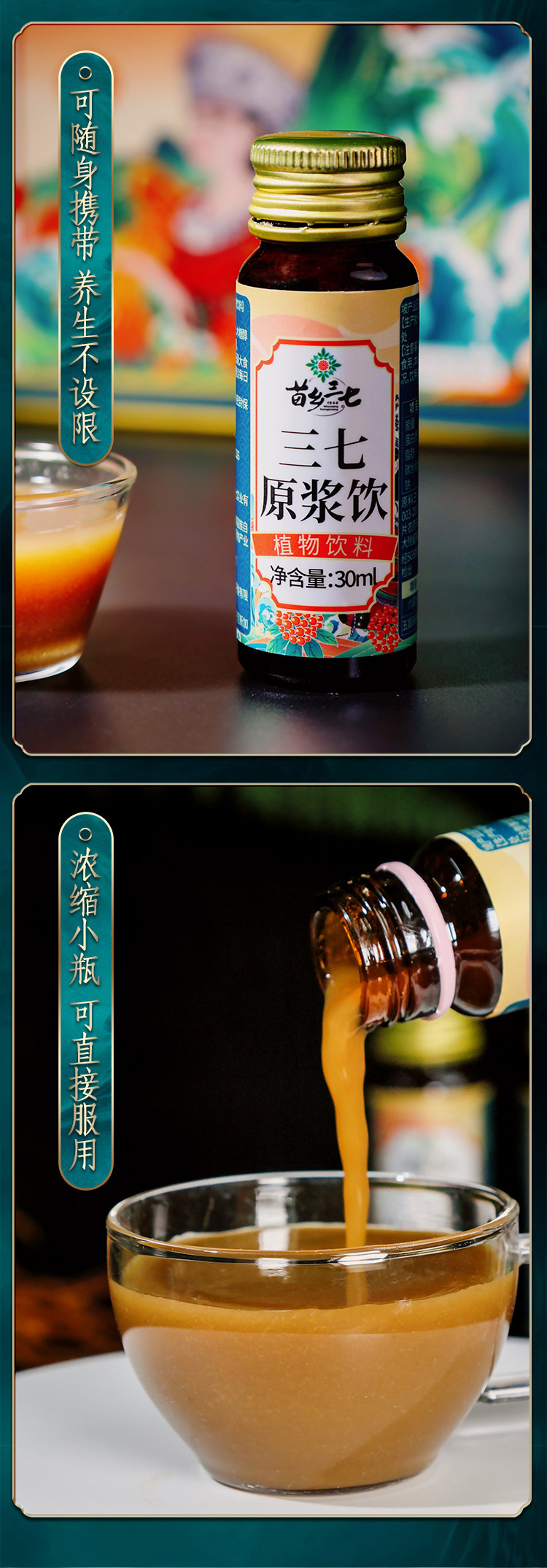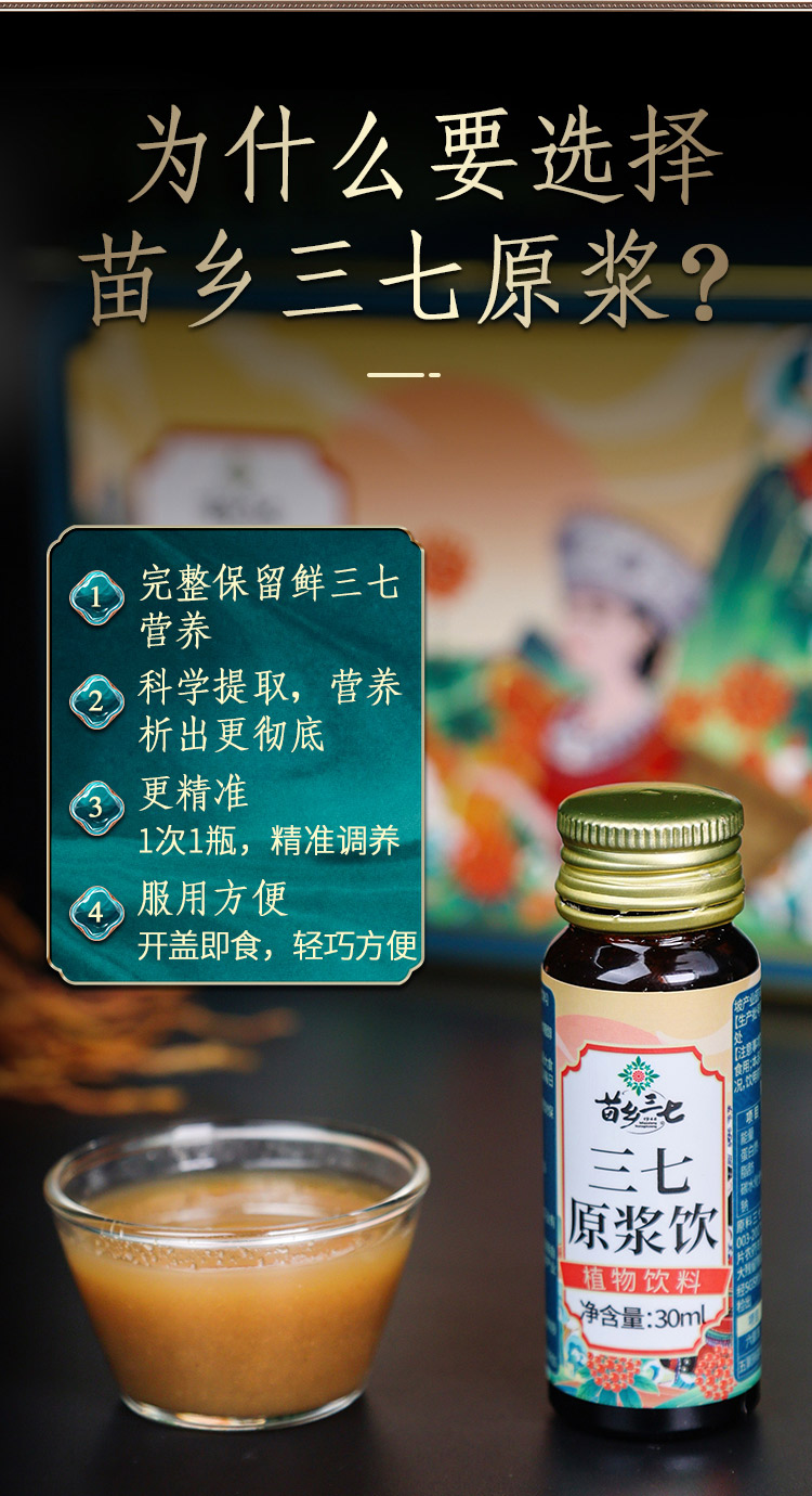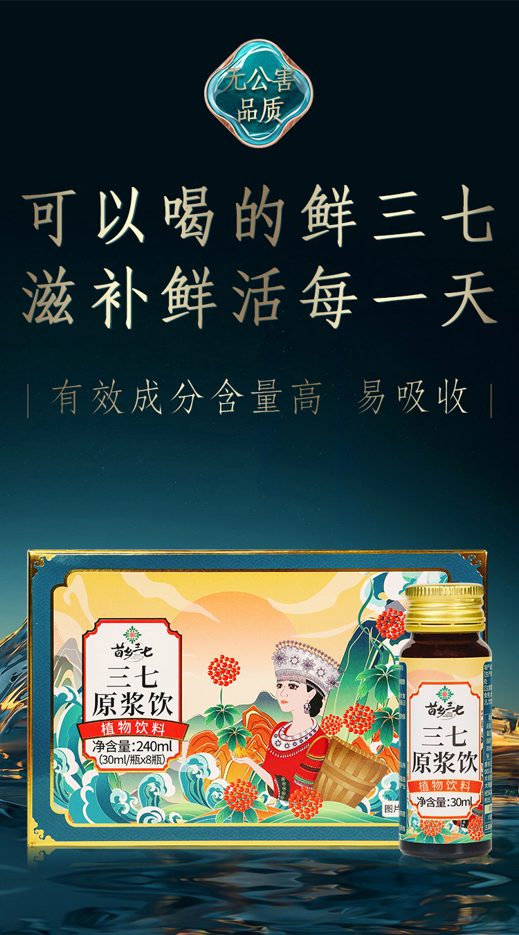 苗乡三七 三七原浆饮30ml*8瓶植物饮料三七须根 无公害三七鲜三七须根