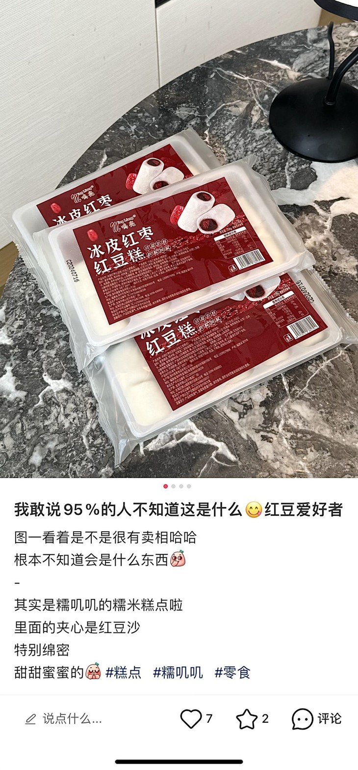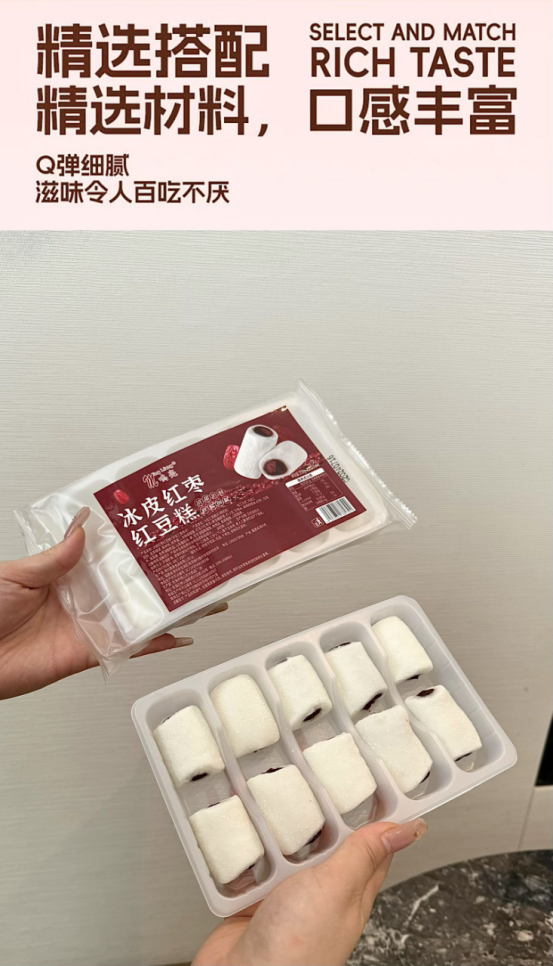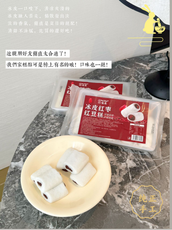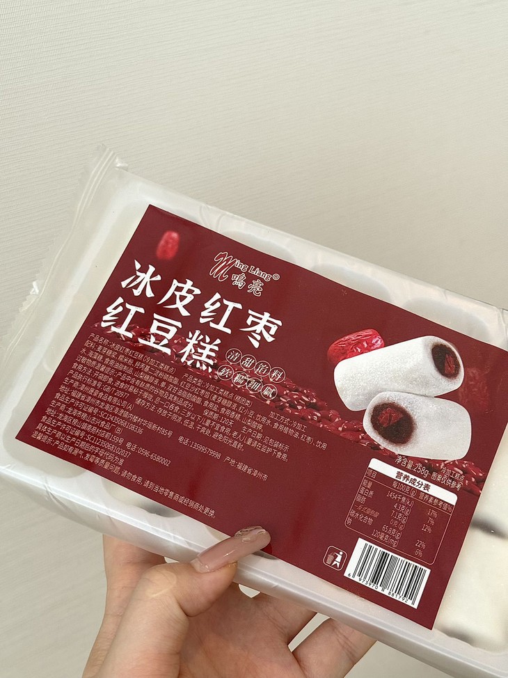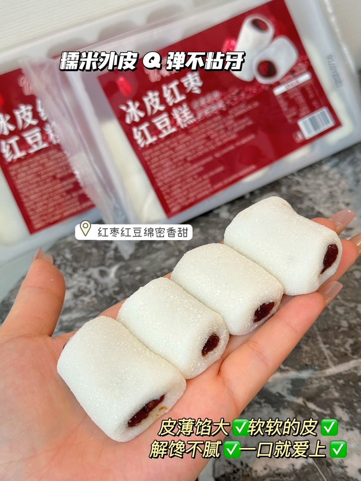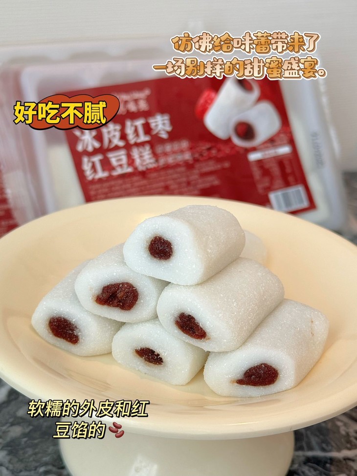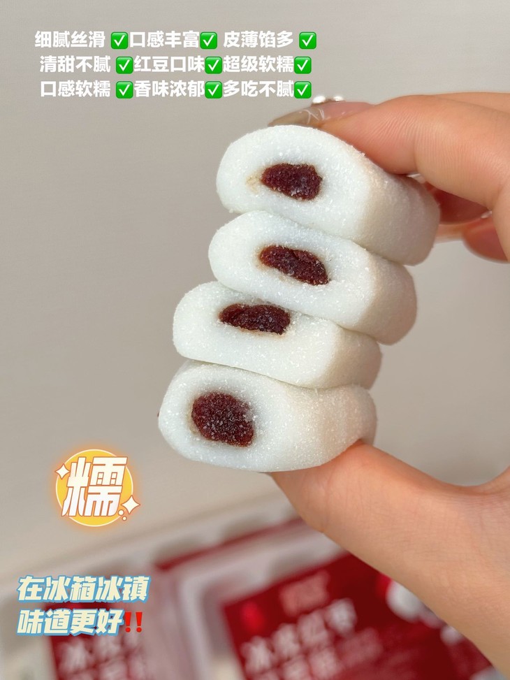冰皮的软糯 Q 弹,搭配上香甜浓郁的红枣红豆馅,口下去,简直是味蕾的狂欢!红枣的醇厚香气与红豆的细腻沙甜完美融合😋,每一口都能感受到满满的诚意。 而且冰皮的清凉口感,在炎热的夏天里,就像一阵微风拂过,让人心情愉悦。