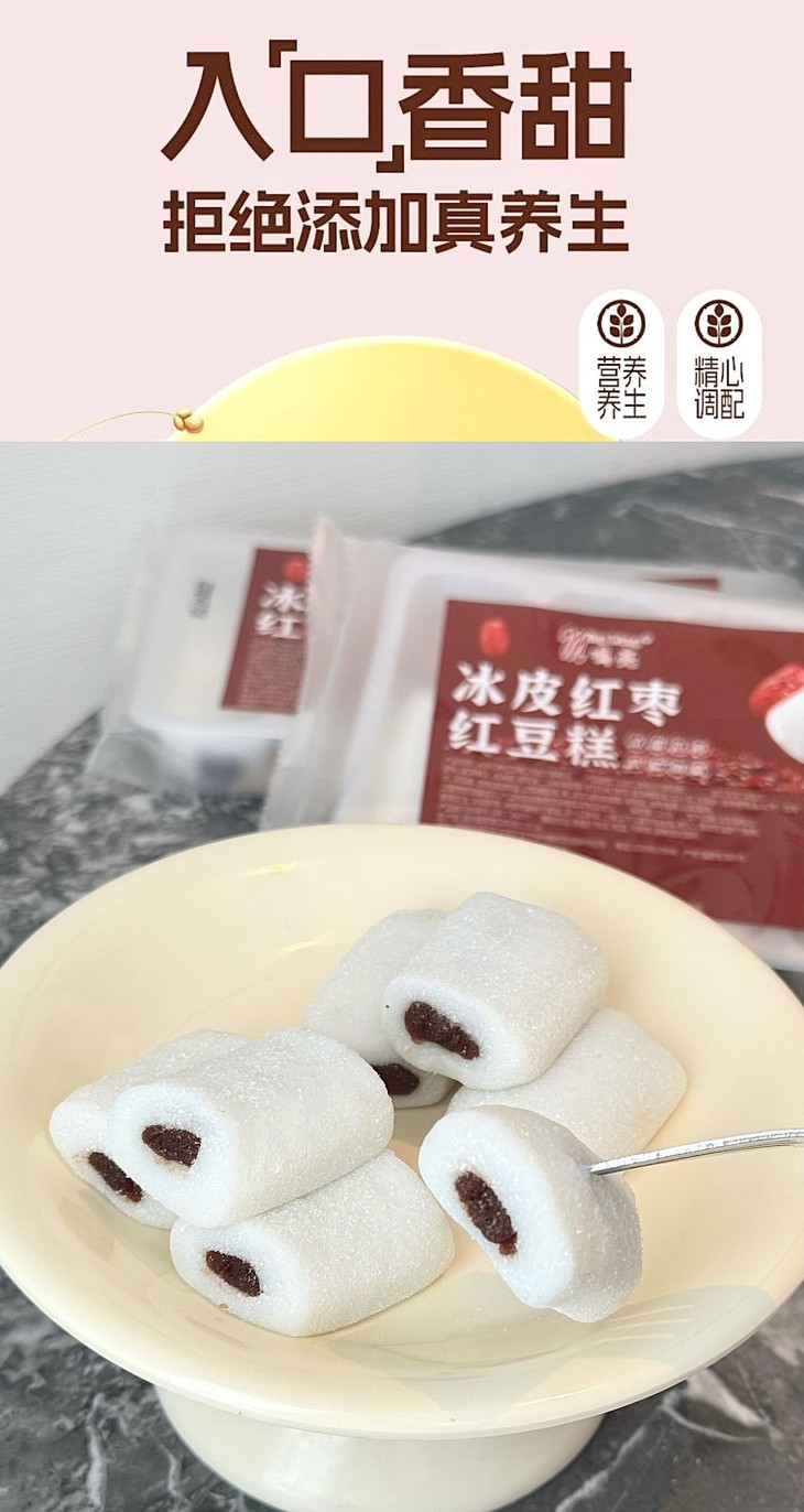 👏👏【鸣亮冰皮红枣红豆糕】💗精选江南优质糯米制成,冷加工工艺,👍水磨糯米粉制糕! 细腻丝滑,口感丰富;皮薄馅多,⭐