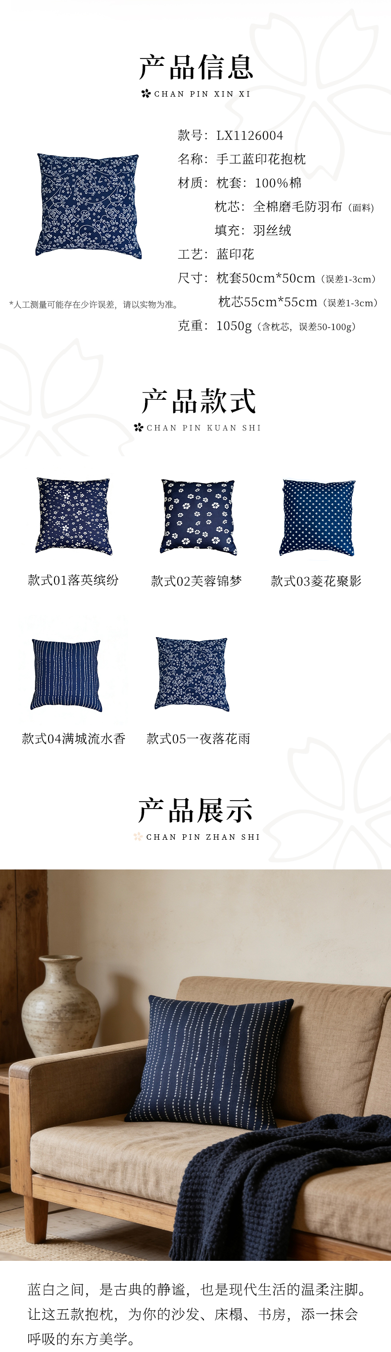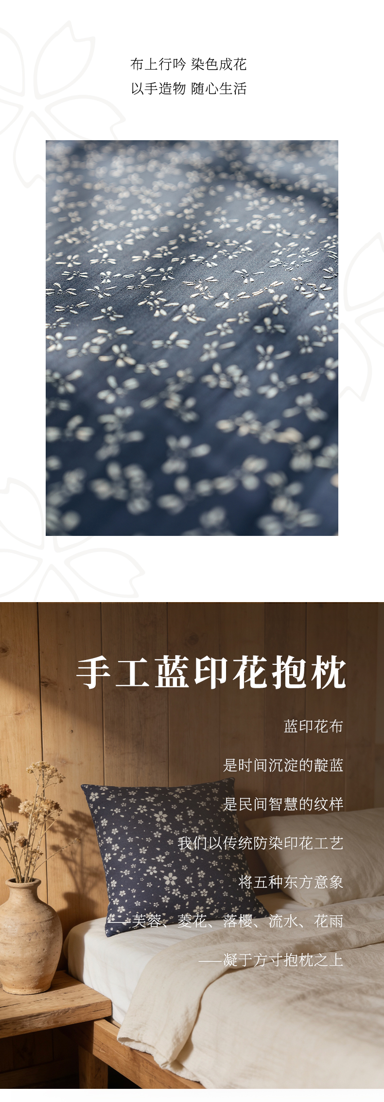 【林栖好物】LX1126004手工蓝印花抱枕(预售7天发货)