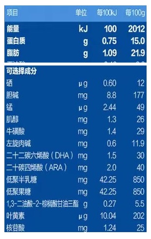 6.本品添加OPO较高,但益生元相加也只有100克含量1.7克;