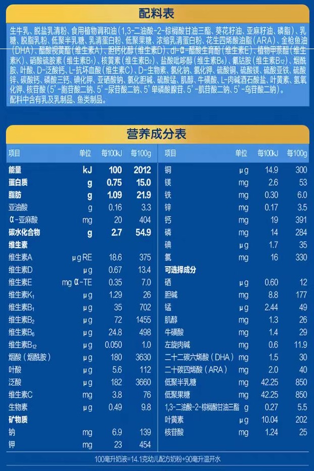 7.DHA与ARA添加量较低,分别只有30与40毫克;