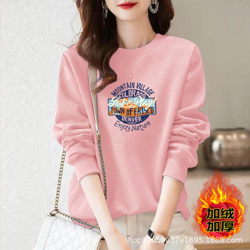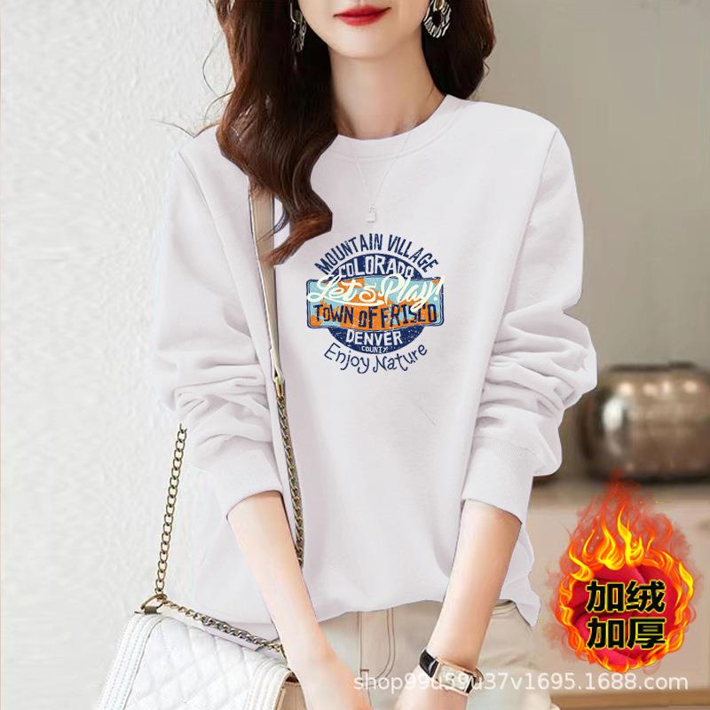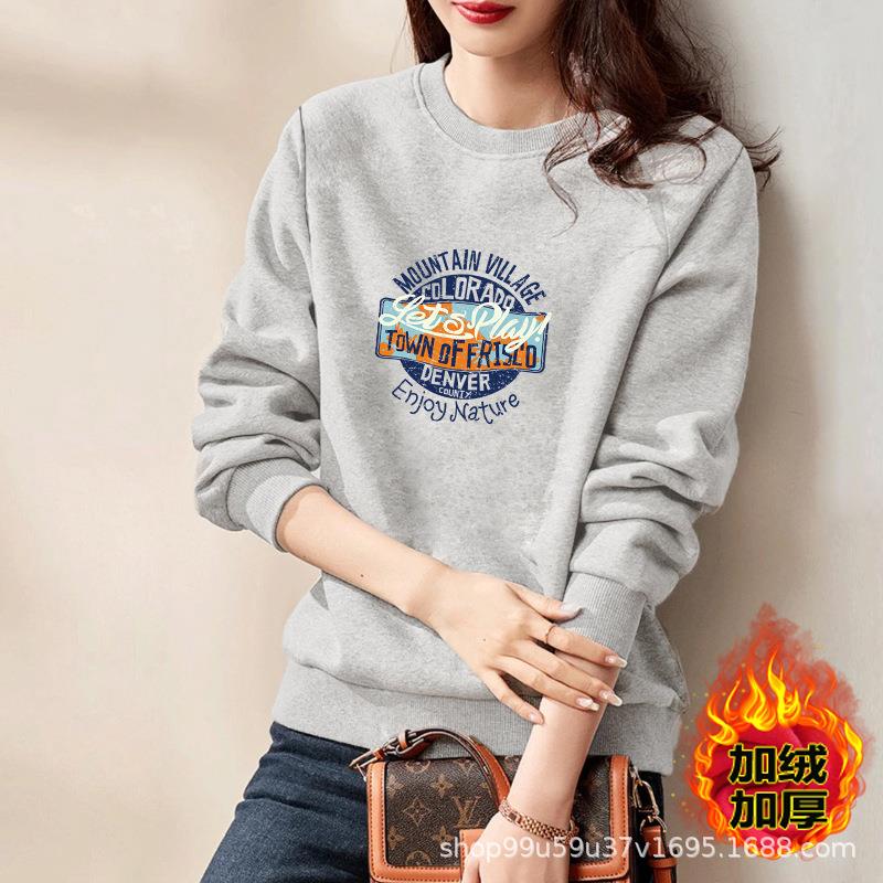 加绒卫衣圆领棉质正肩运动宽松休闲时尚印花上衣女潮秋冬外套多色