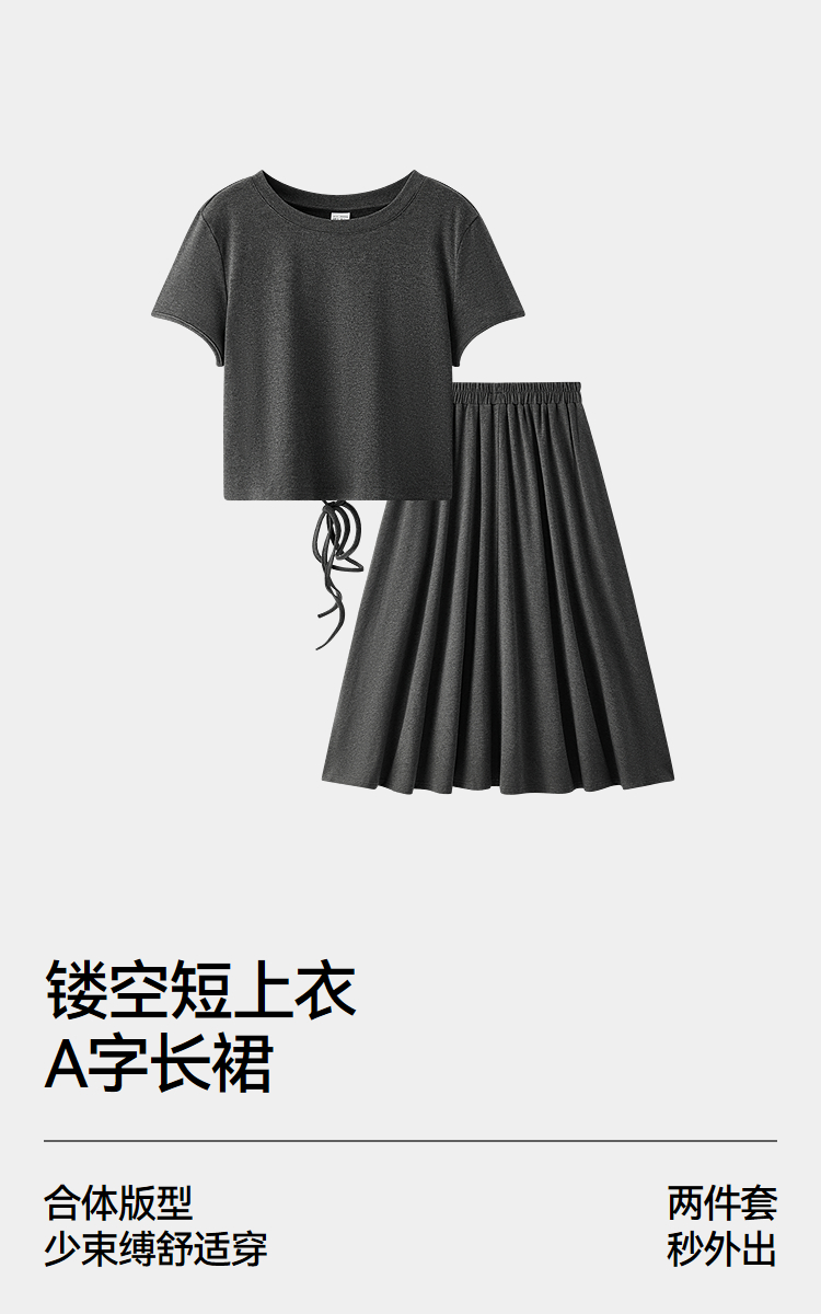 [商场同款]森马套装女镂空短上衣A字半身裙2025夏新款优雅两件套