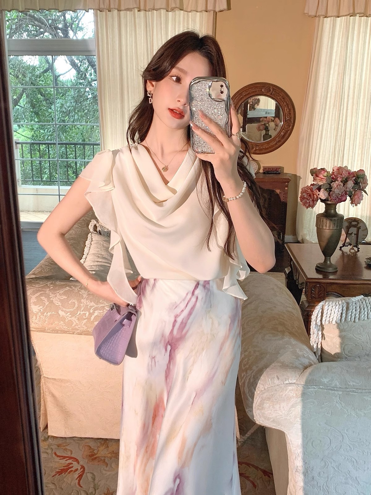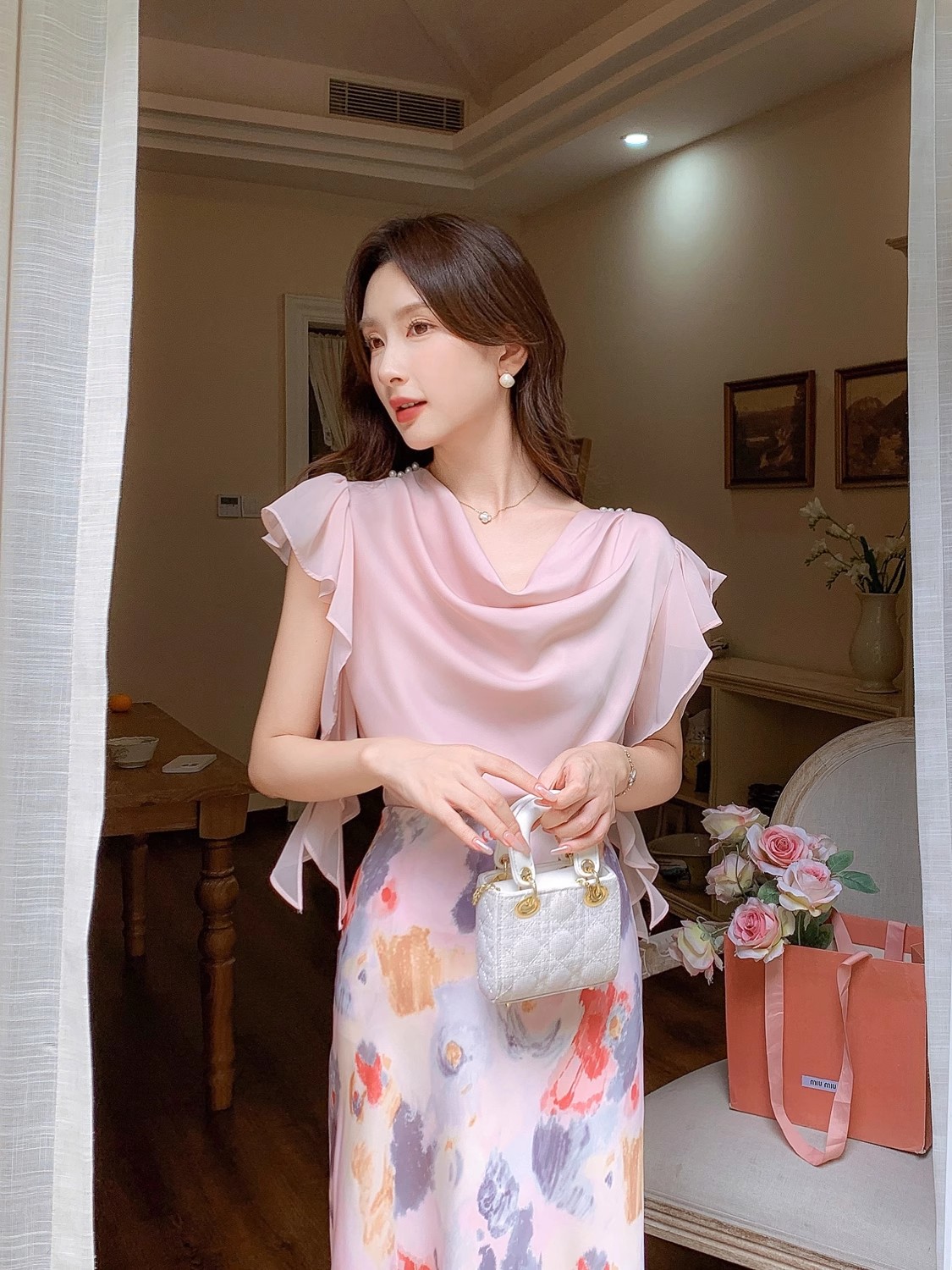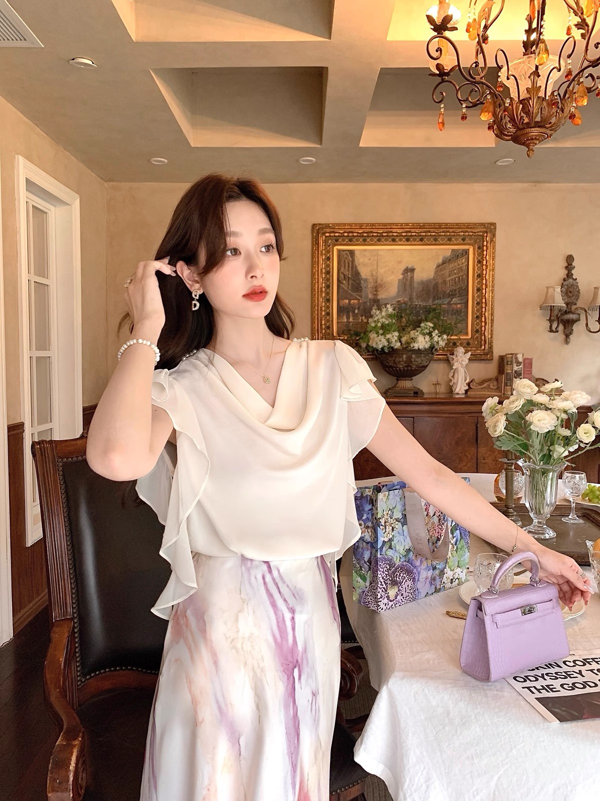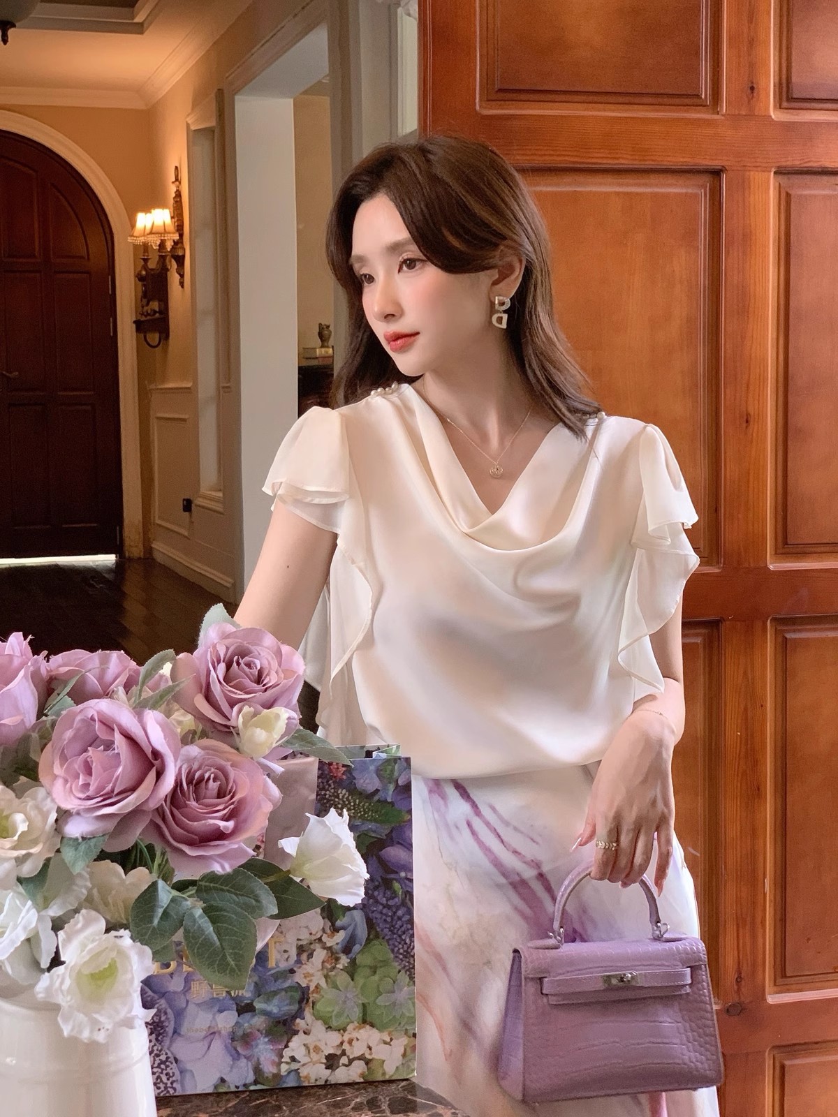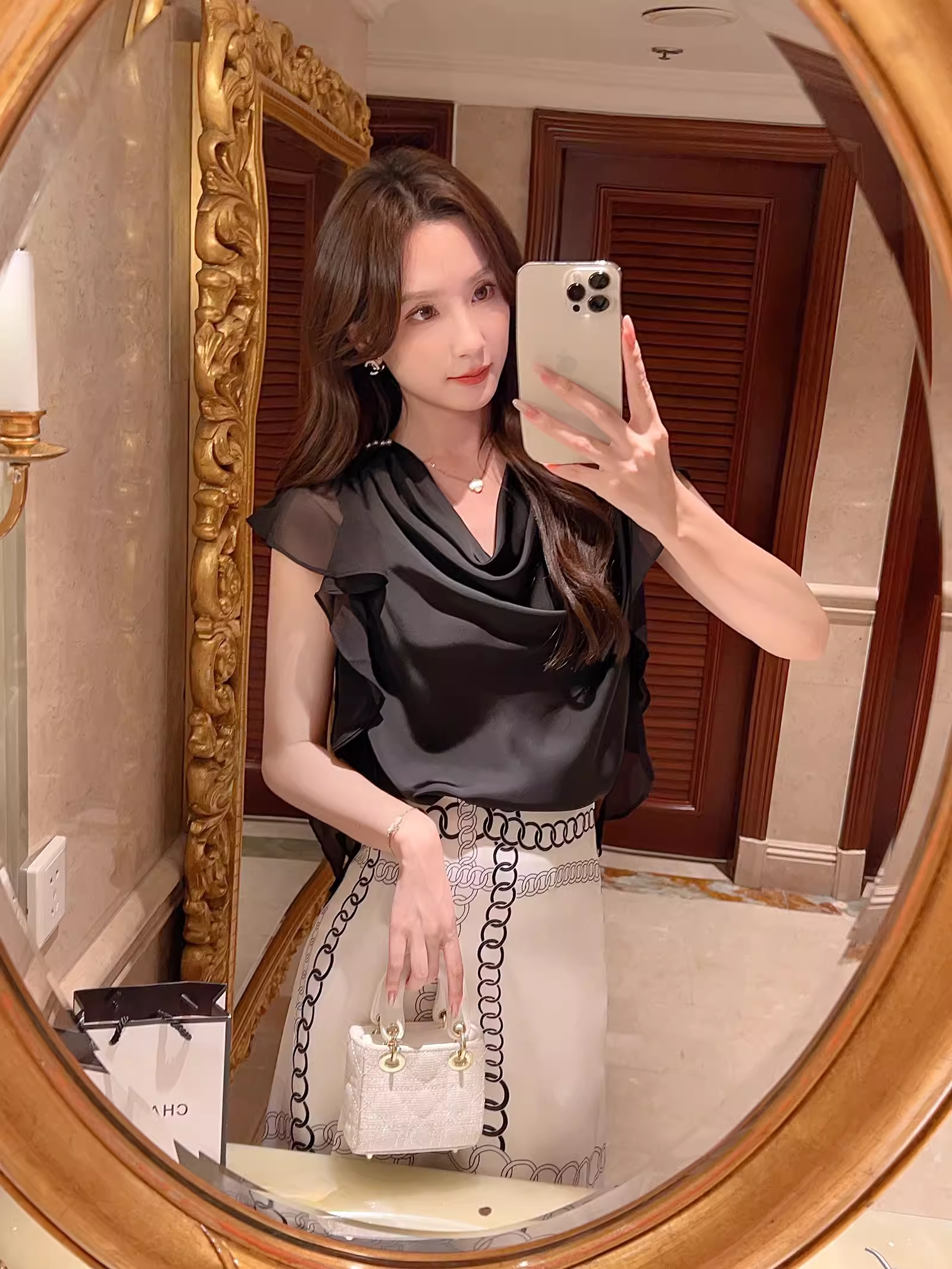 张心子【浪漫马黛】高级感荡领飞袖上衣女夏新款气质洋气小衫 U2406001