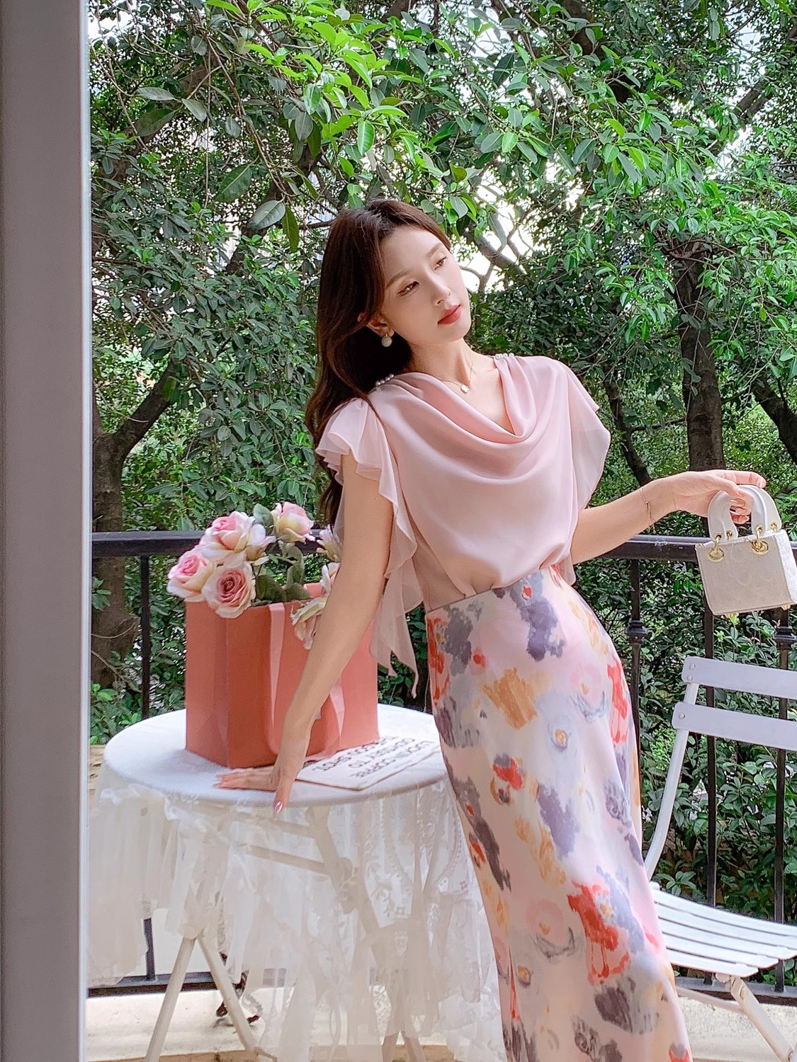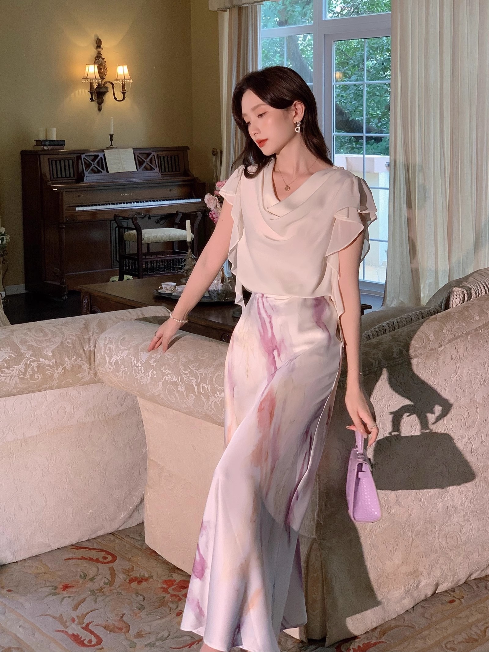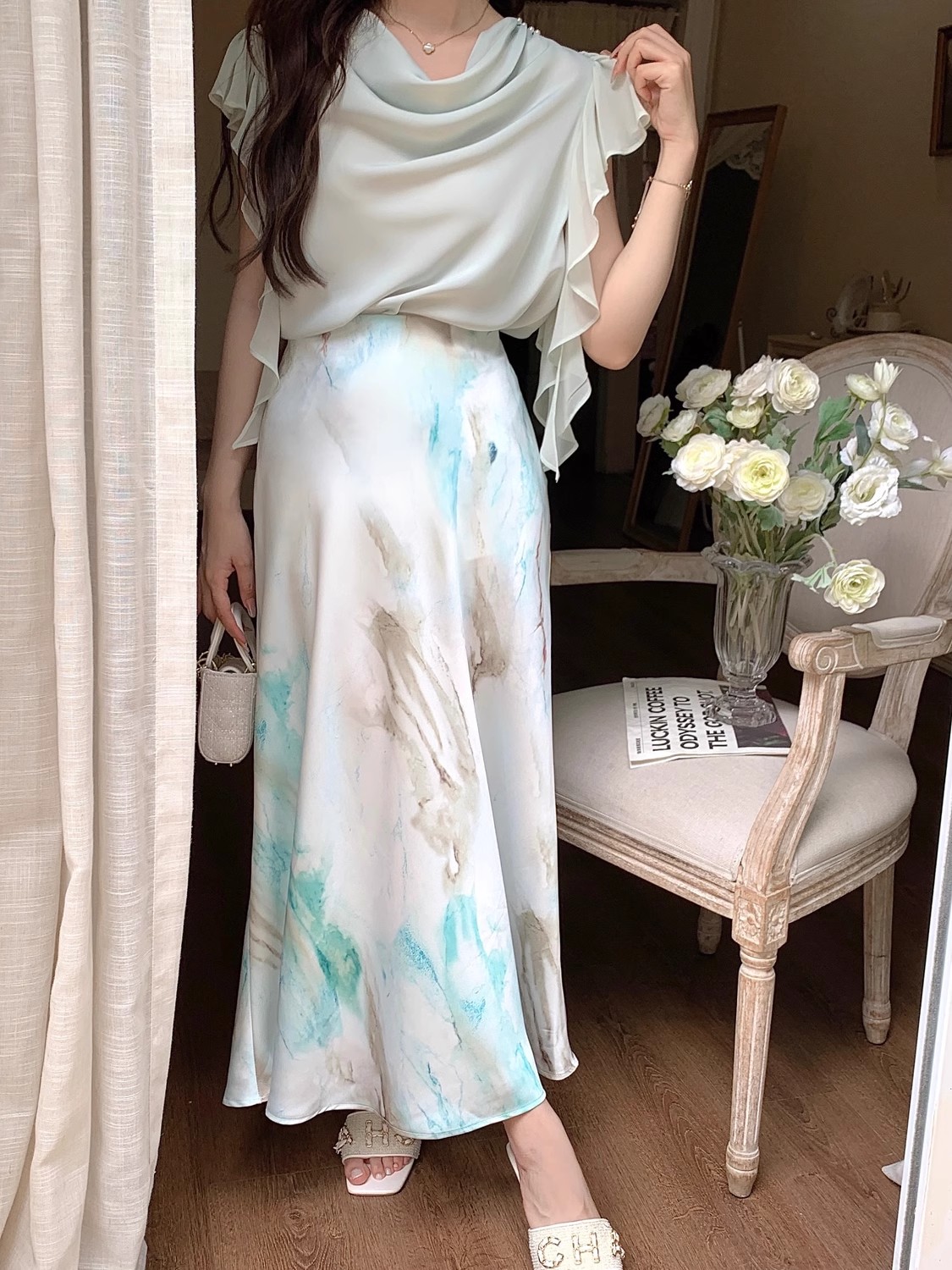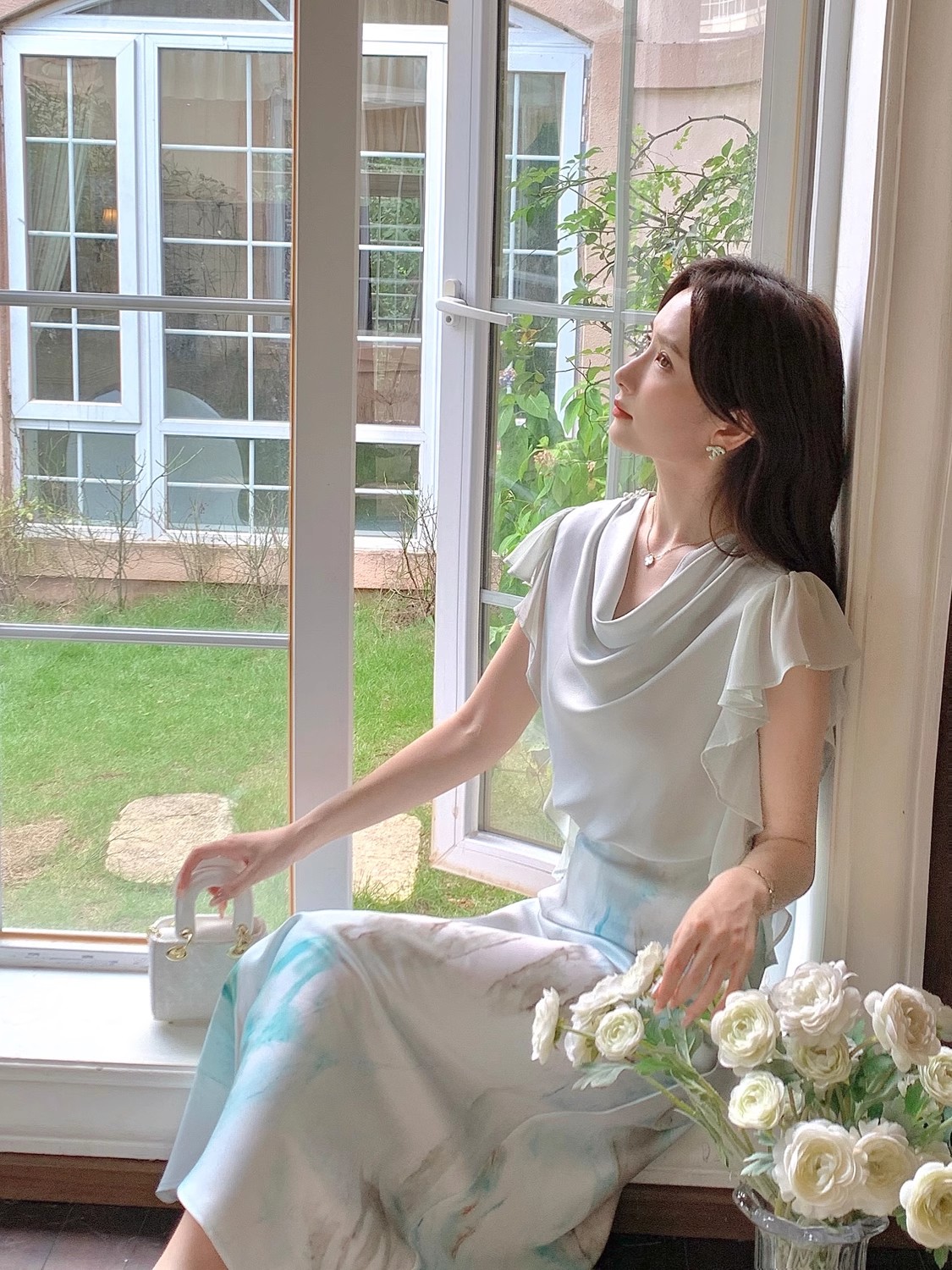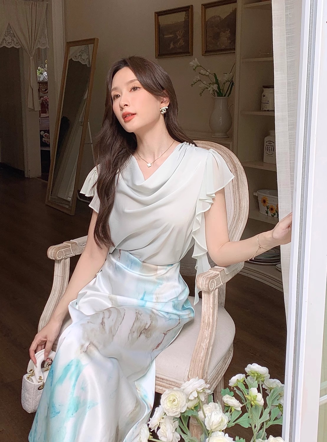张心子【浪漫马黛】高级感荡领飞袖上衣女夏新款气质洋气小衫 U2406001