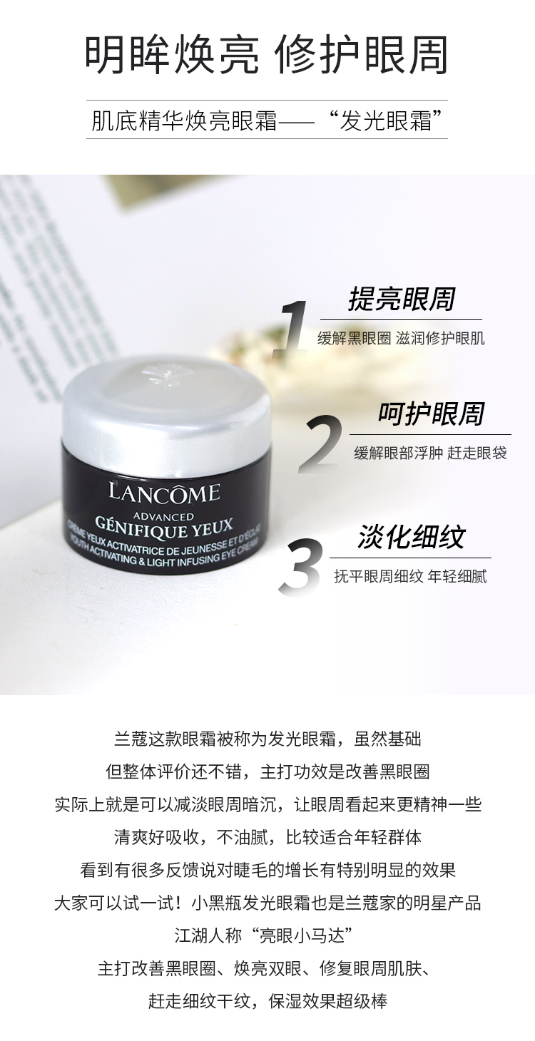 【买1送1 到手2个】兰蔻小黑瓶眼霜5ml丨肌底精华焕亮眼霜/发光眼霜/小黑瓶眼霜 中小样