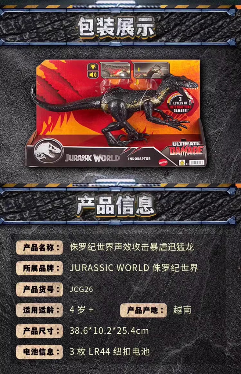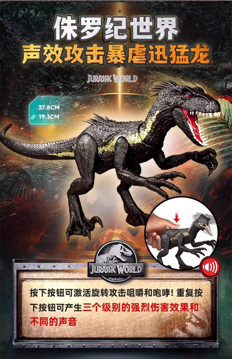 美泰 侏罗纪世界声效攻击暴虐迅猛龙MATCJCG26