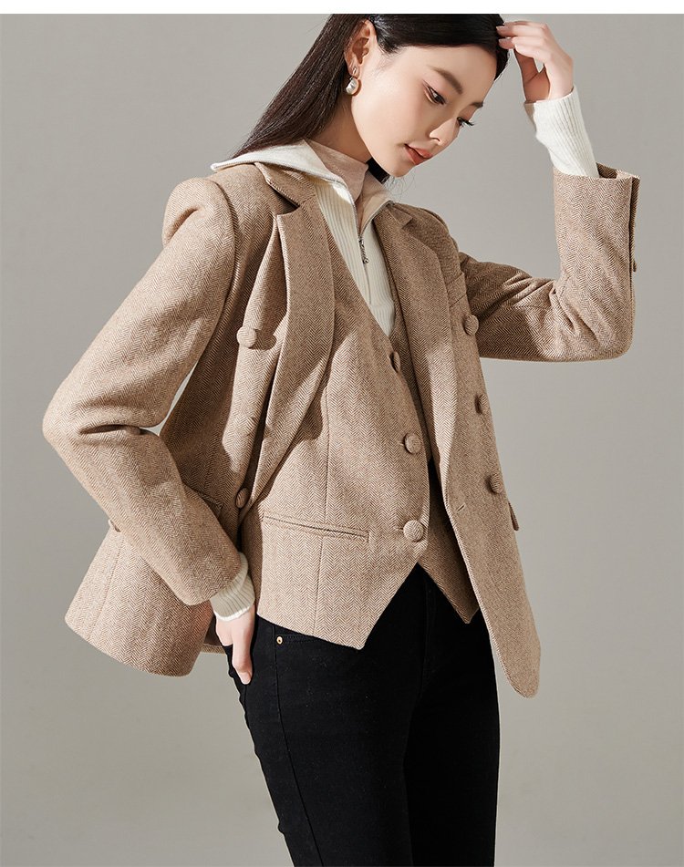 剩XL【芳外】绵羊毛外套马甲两件套8T23DG1409
