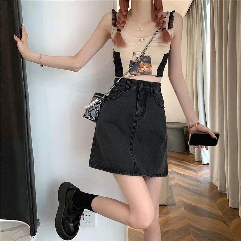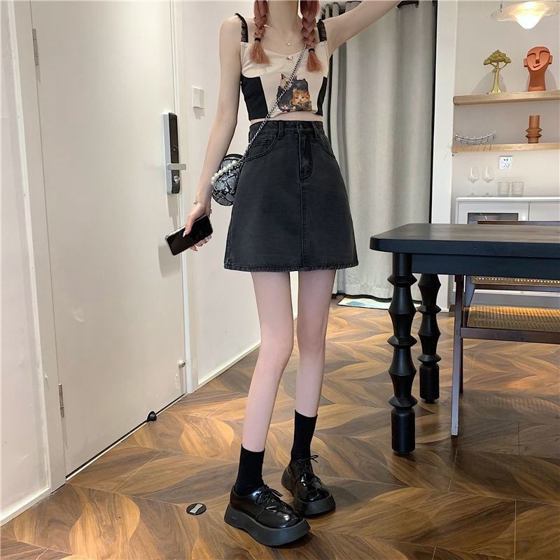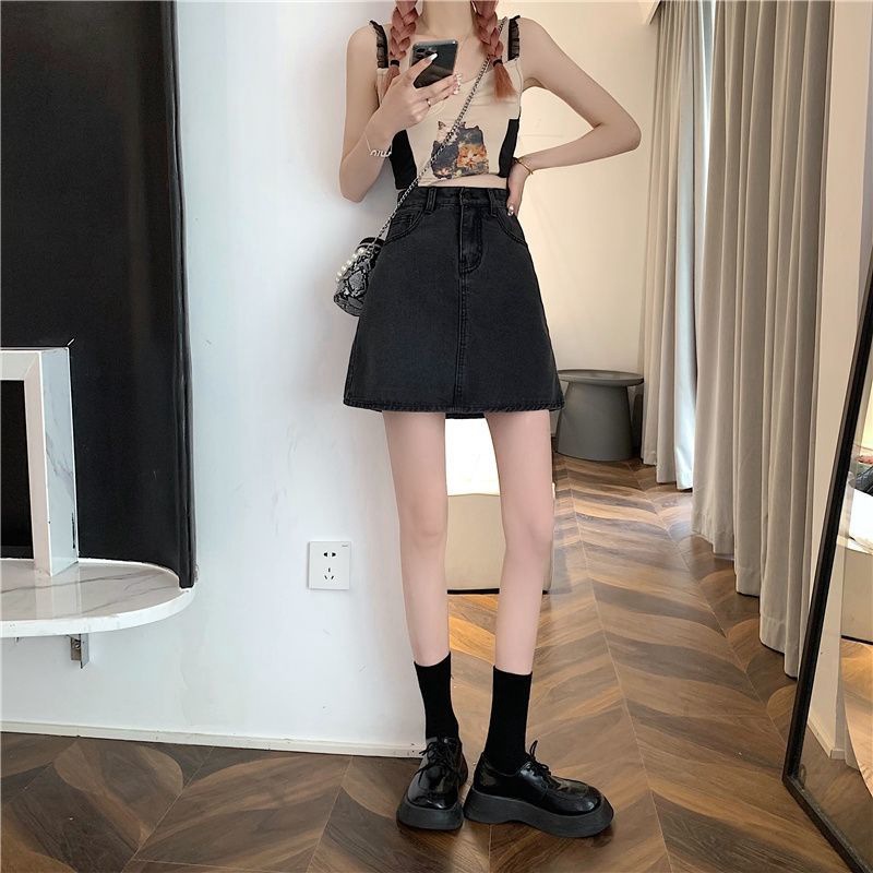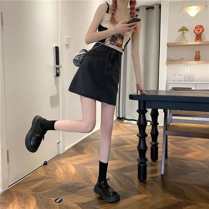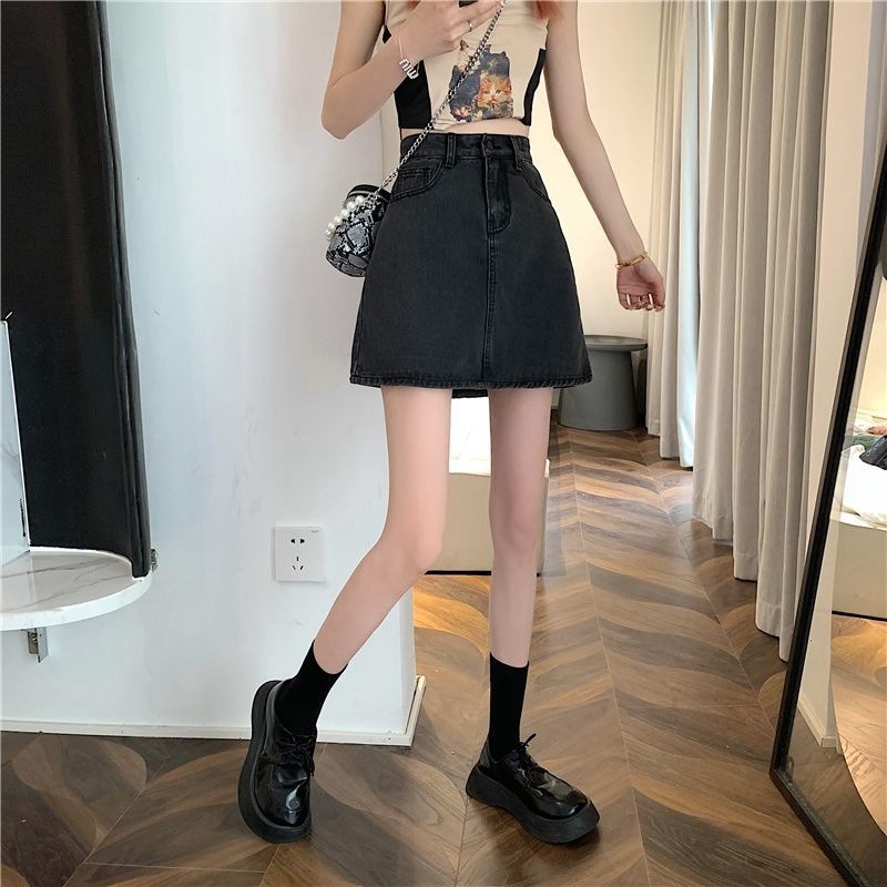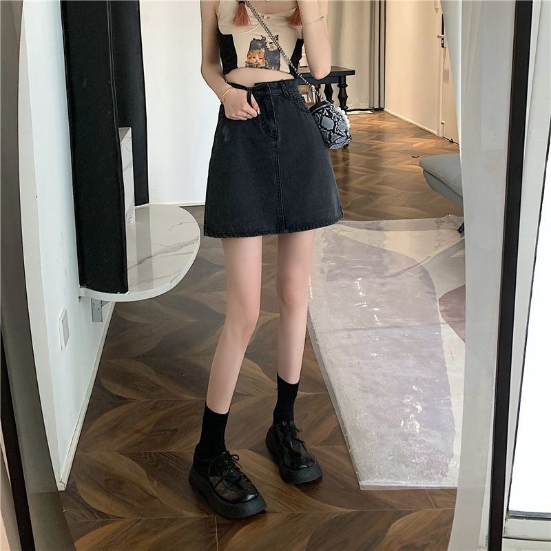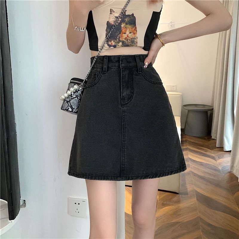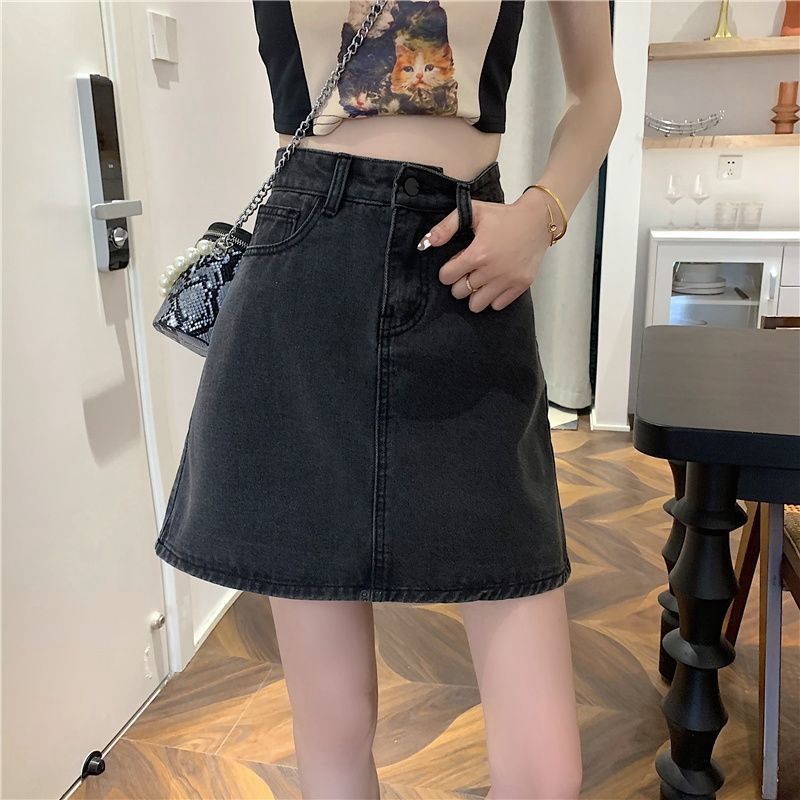【GZ】无忧购韩版ins百搭显瘦小个子牛仔包臀a字短裙001#(截单后7天发货)