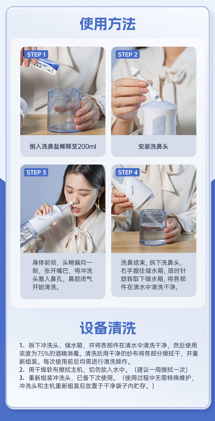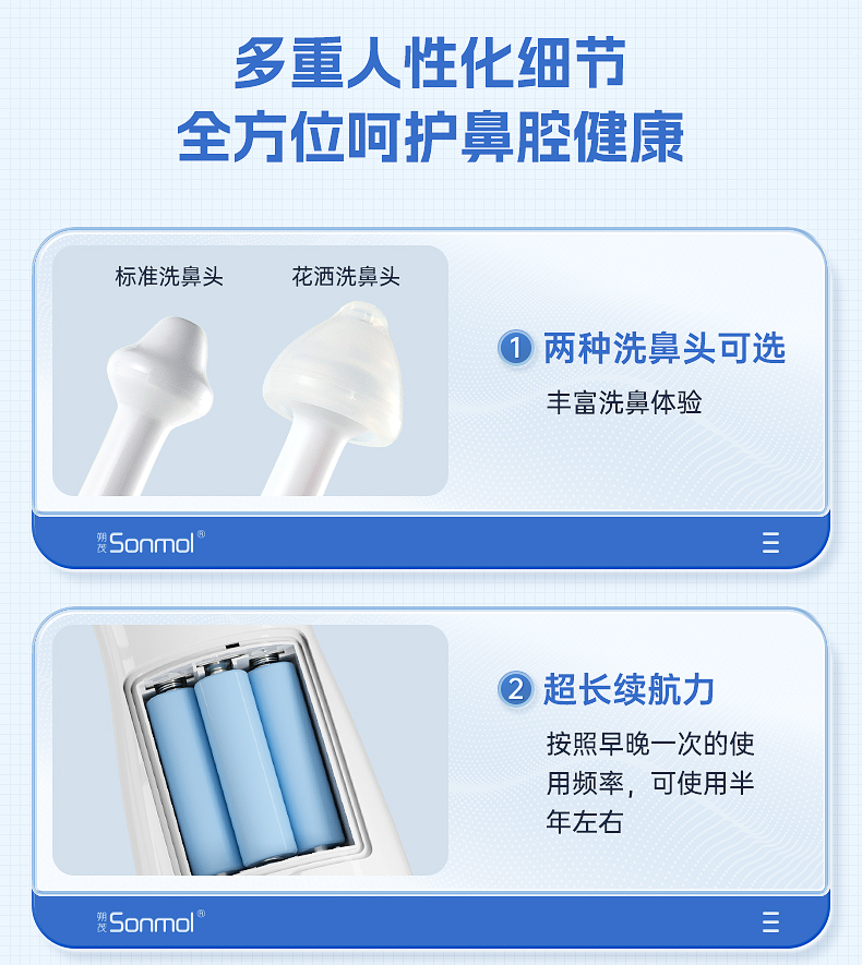 【山姆同款】【换季好物】朔茂Sonmol 电动洗鼻器 家用水流灌洗系列 鼻腔冲洗 鼻炎 成人儿童医用冲鼻器