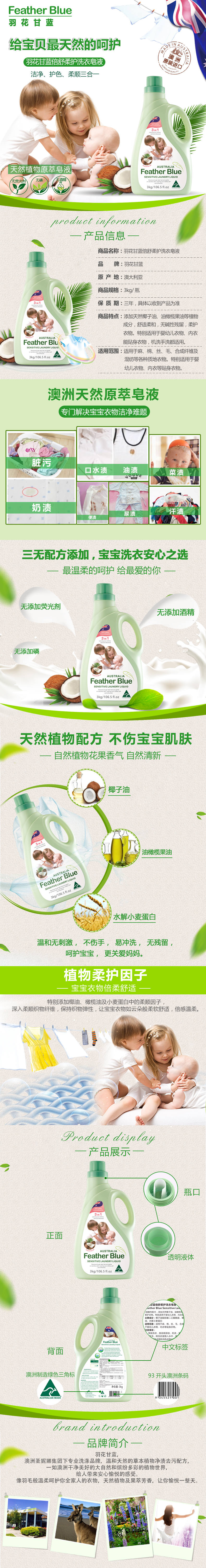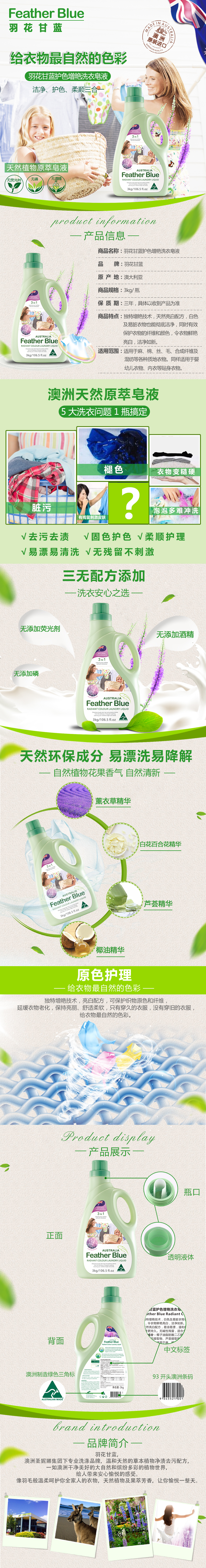 羽花甘蓝洗衣液皂液成人儿童适用洁净护色舒柔3kg