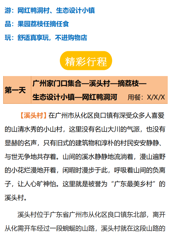 【溪野寻踪】 从化溪头村、生态设计小镇、 摘荔枝、网红鸭洞河 纯玩一日游,保利星座花园、保利雅苑业主专享