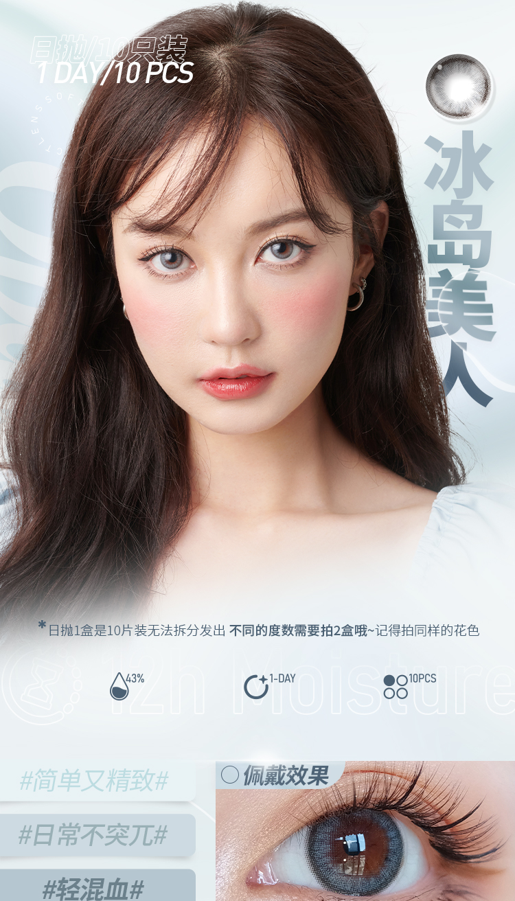 Obalens冰岛美人百搭自然美瞳日抛网红款大直径14.2mm非离子隐形近视眼镜水润无感10片装