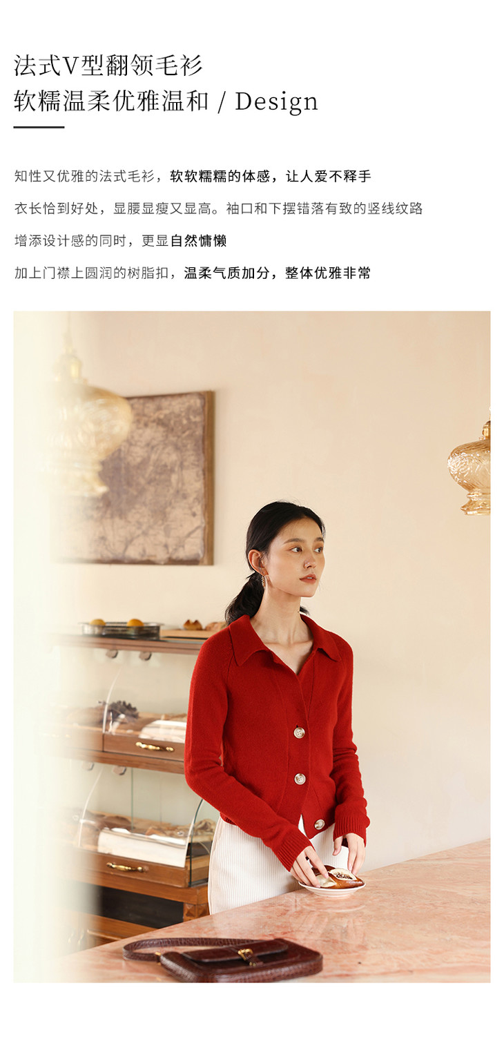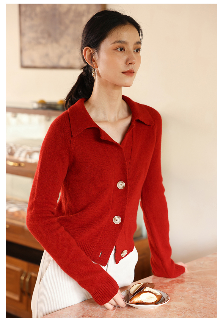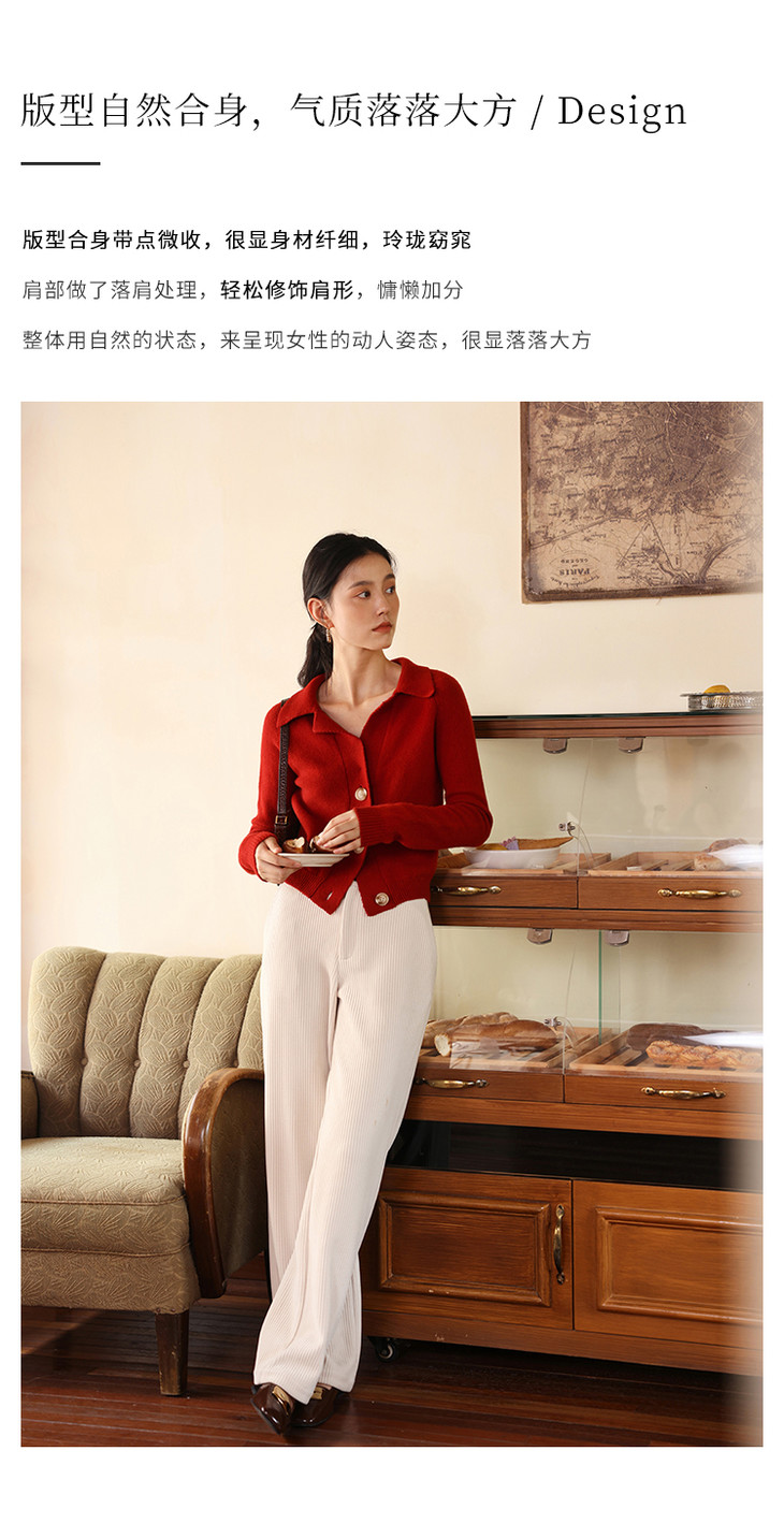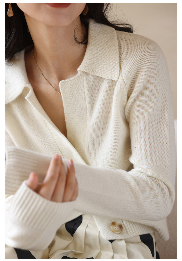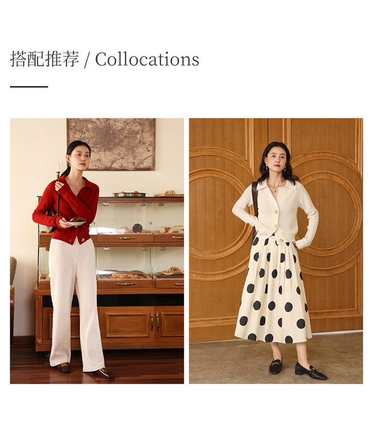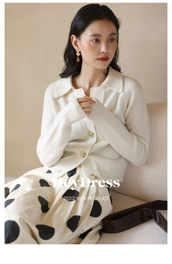 【直播间】HeyDress法式复古羊毛针织开衫女秋季polo领慵懒短款毛衣