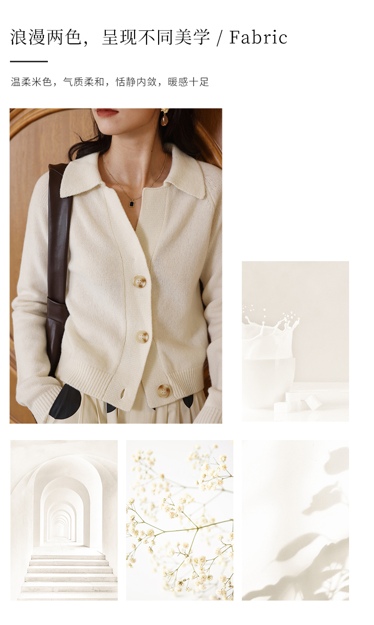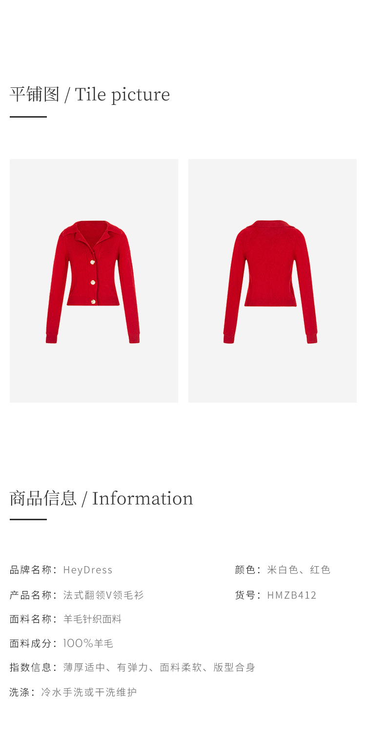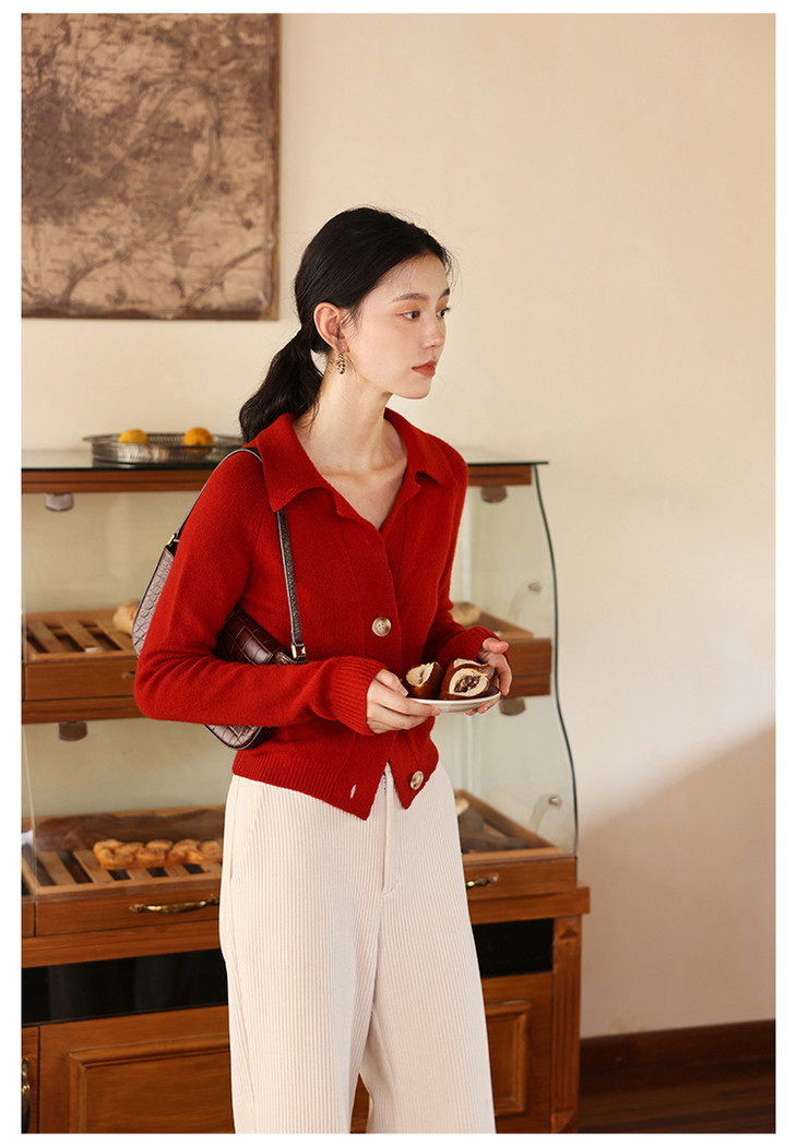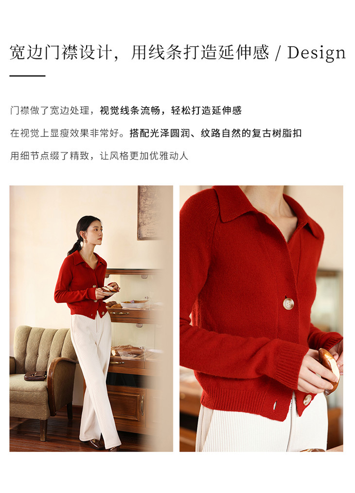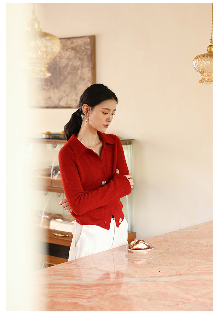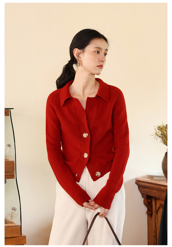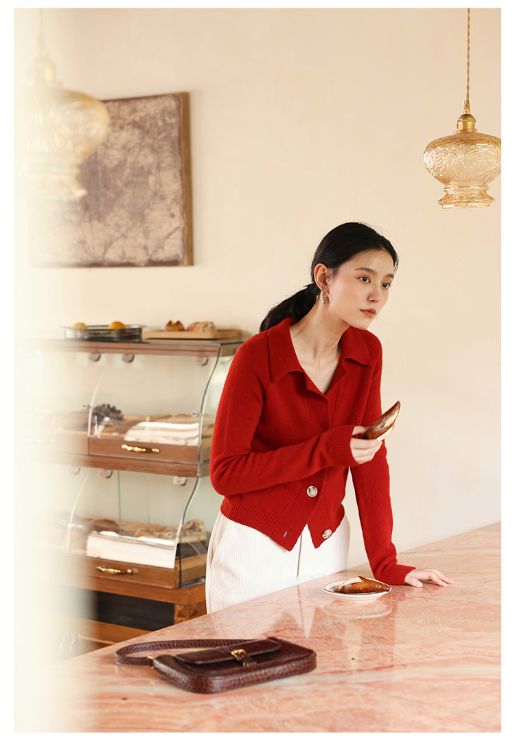 【直播间】HeyDress法式复古羊毛针织开衫女秋季polo领慵懒短款毛衣