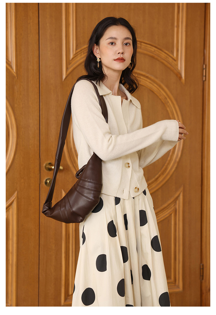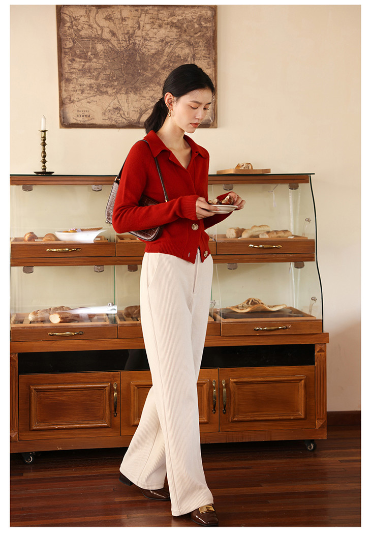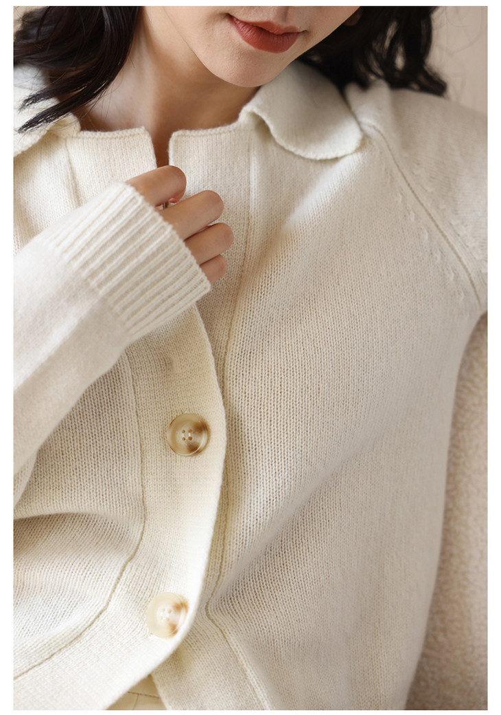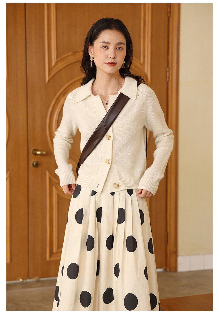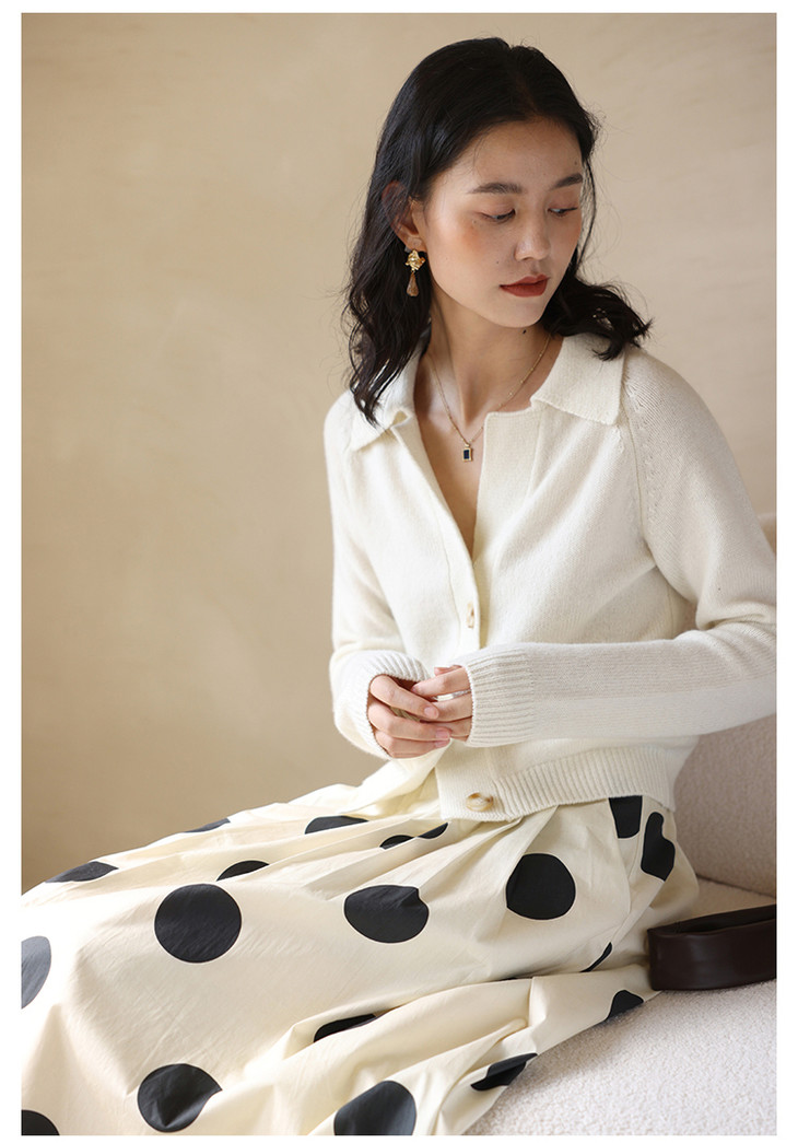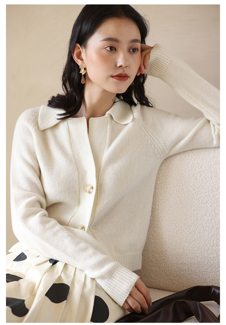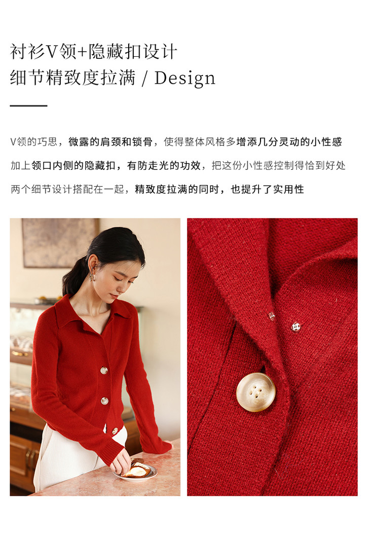 【直播间】HeyDress法式复古羊毛针织开衫女秋季polo领慵懒短款毛衣