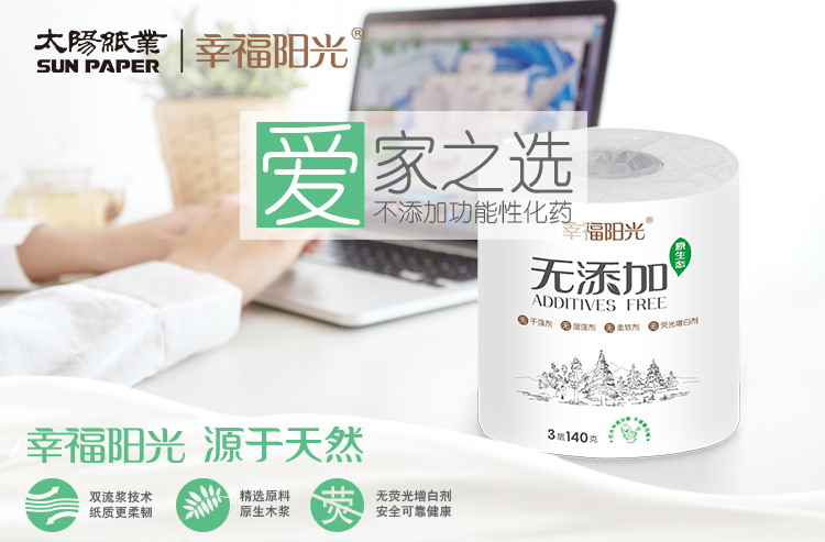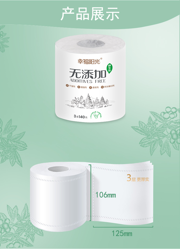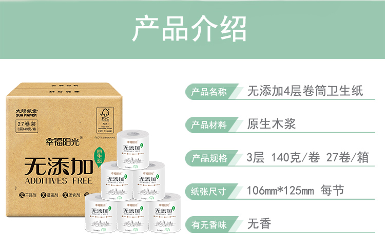 幸福阳光 卷纸 原生态健康无添加卫生纸巾 3层*140克*27卷卫生纸(整箱销售)