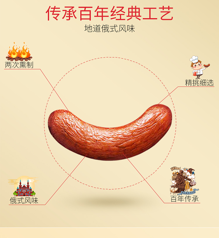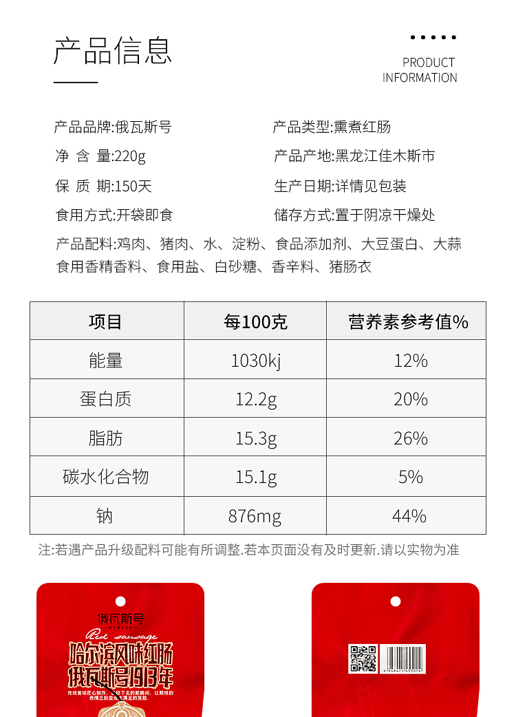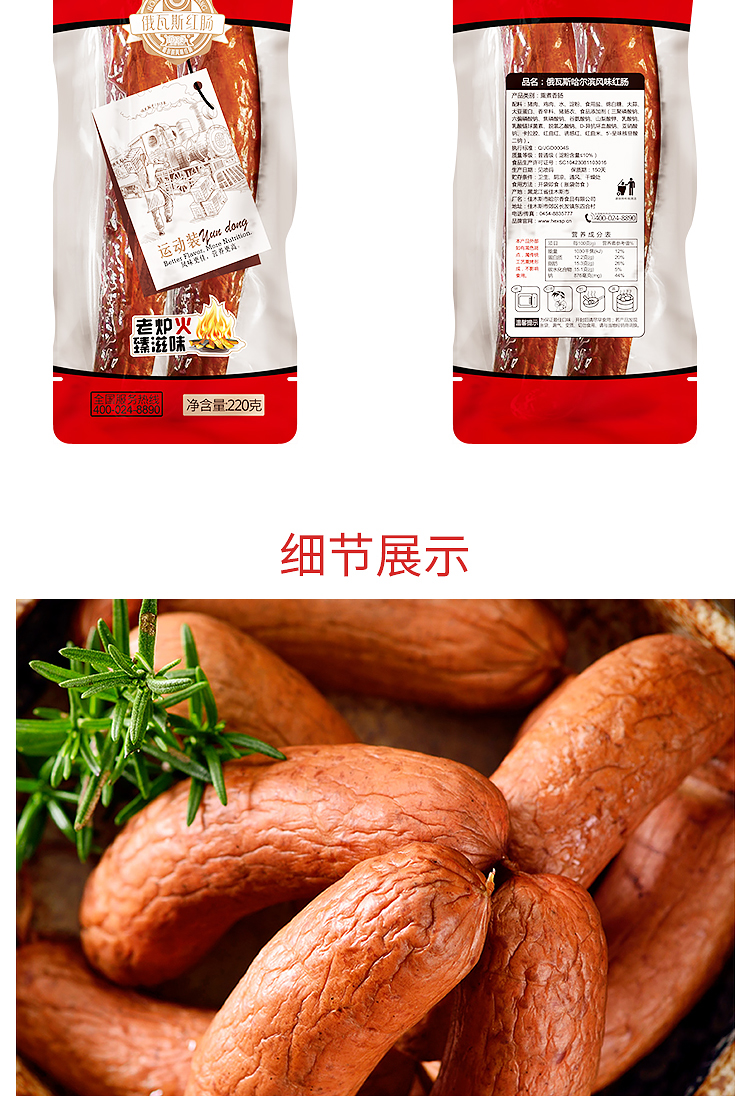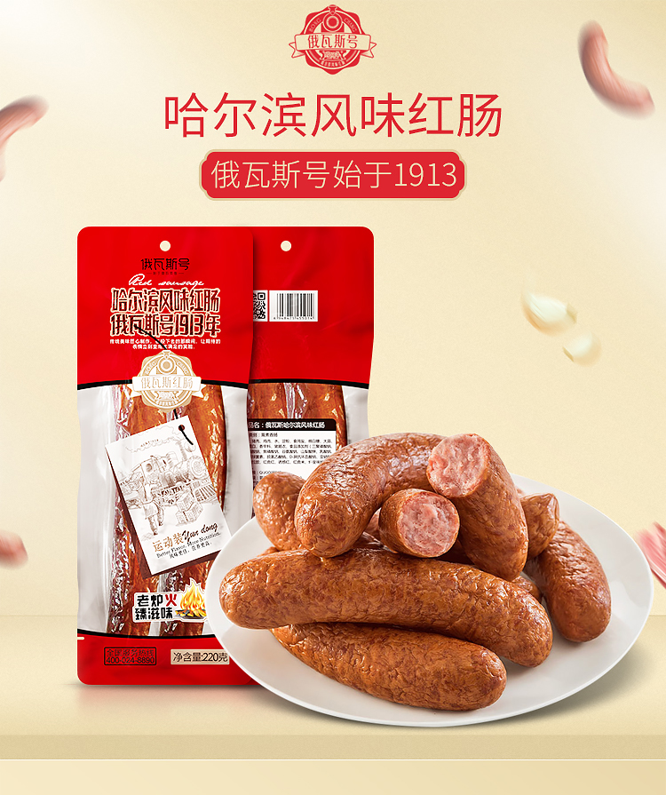 俄瓦斯号 哈尔滨风味红肠 220g 两根装果木熏香肠腊肠火腿肠东北特产熟食腊味 开袋即食