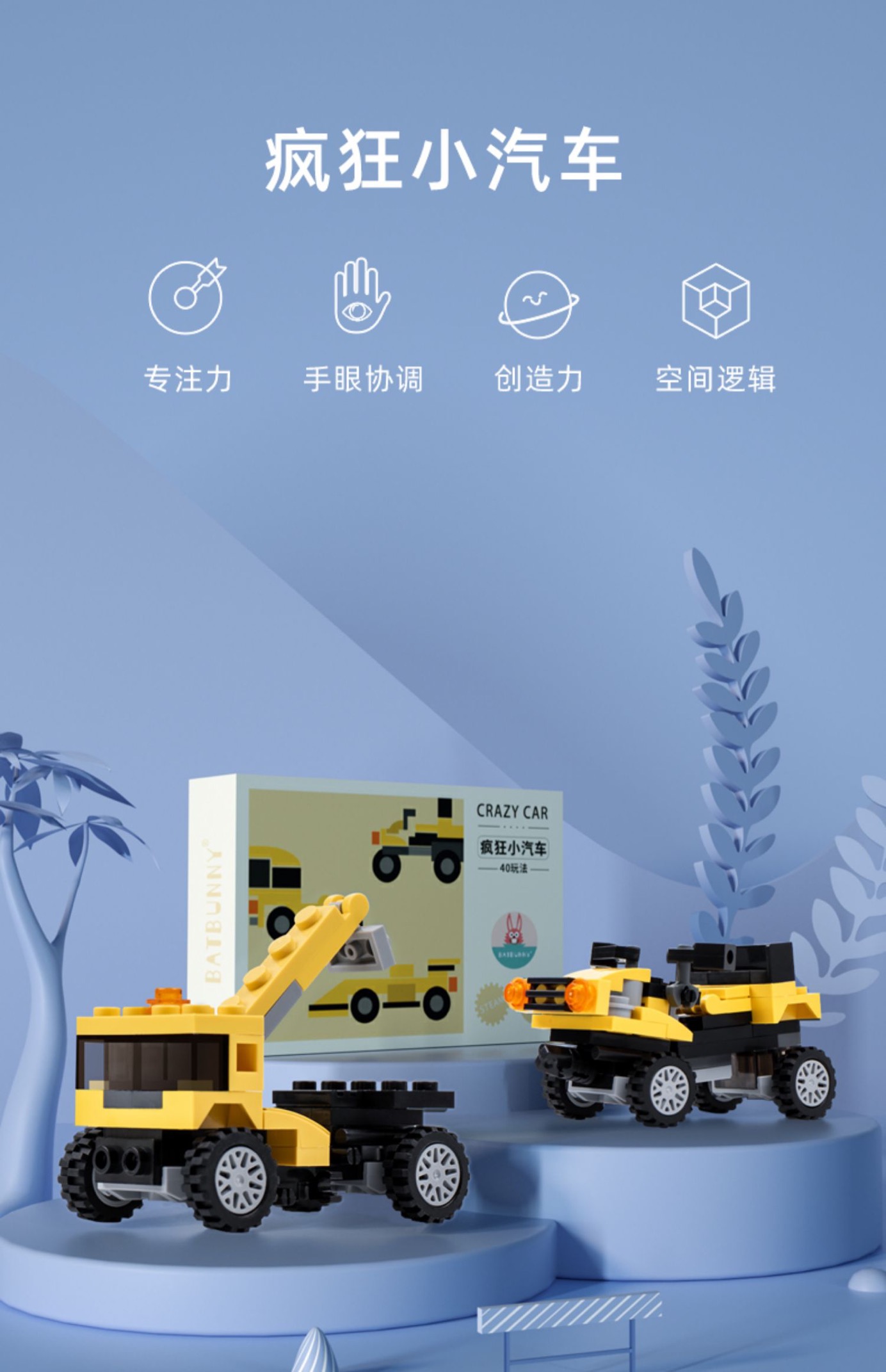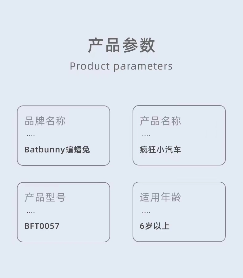 Batbunny蝙蝠兔疯狂小汽车儿童启蒙积木益智玩具