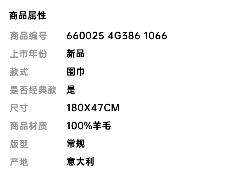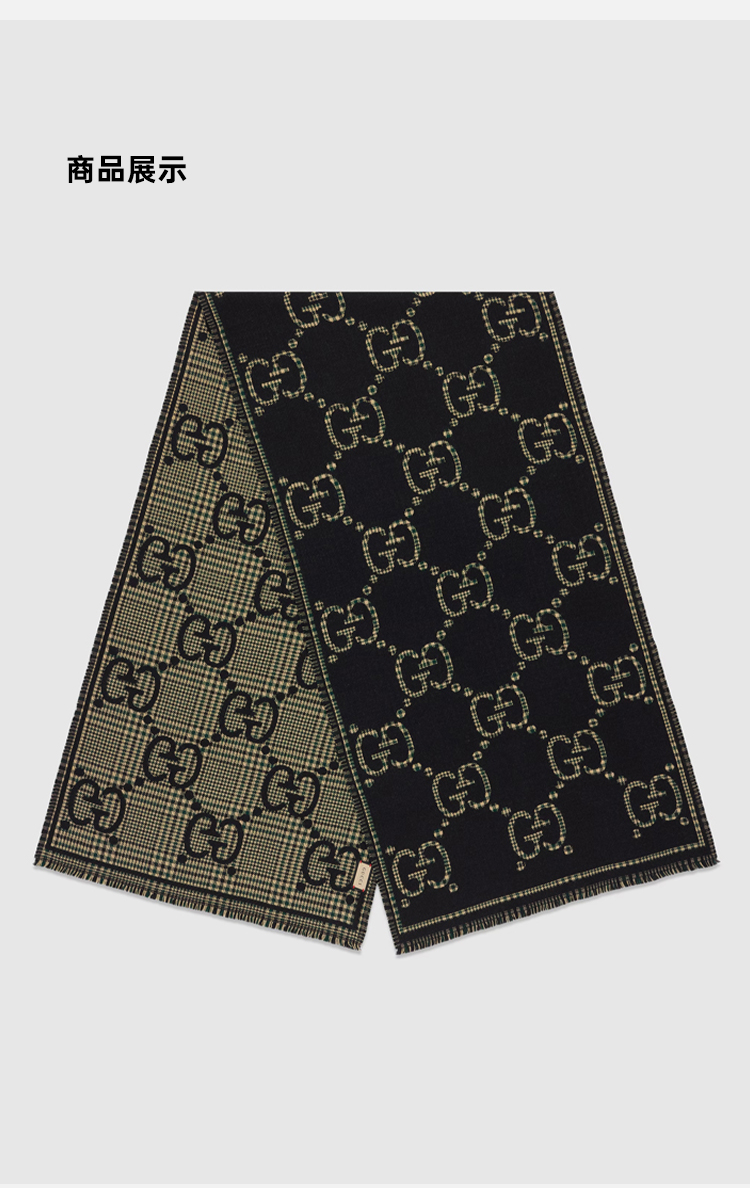 【二】GUCCI 古驰 男女通用格纹 GG 羊毛围巾 混色 660025 4G386 1066