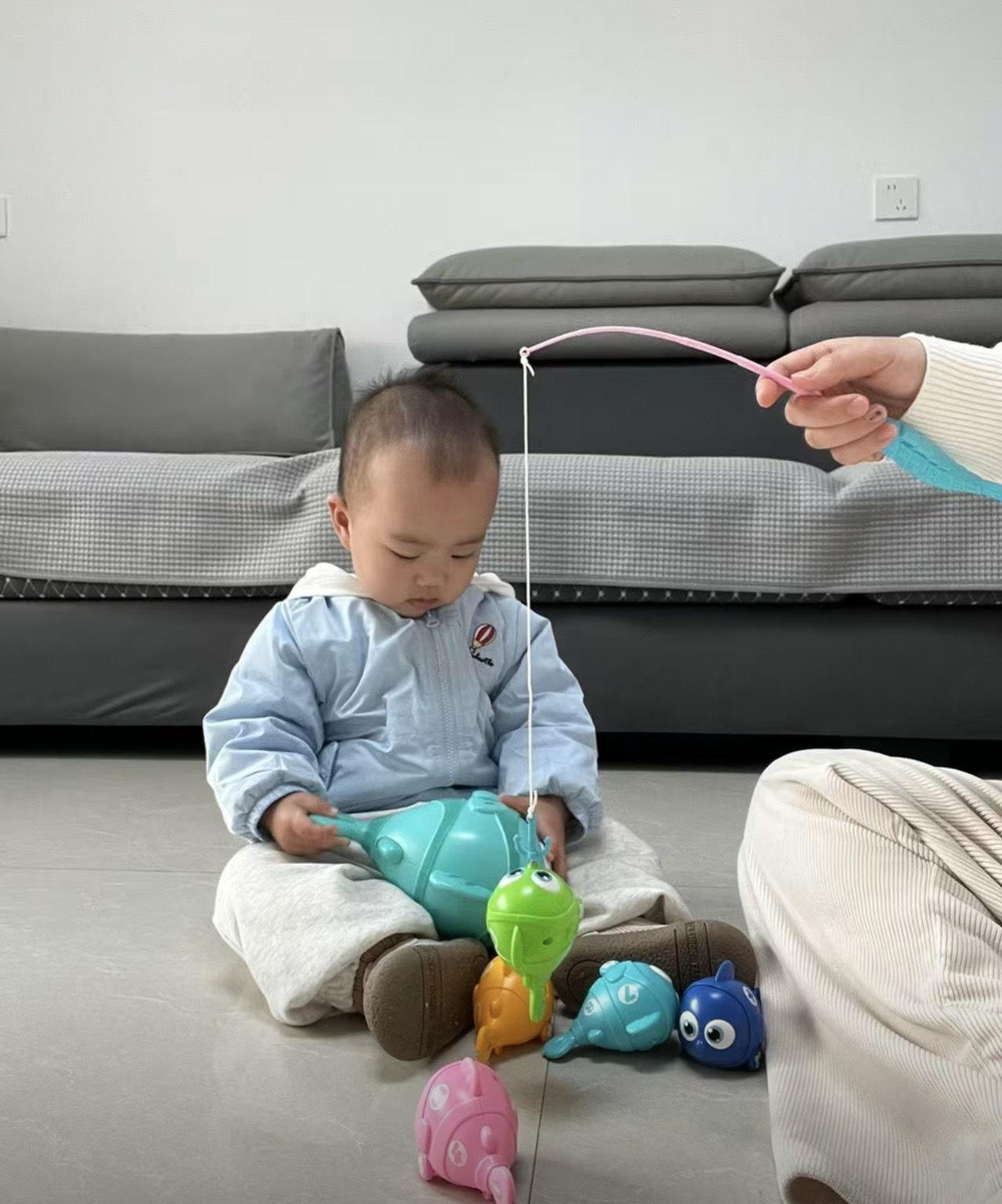 🔥39.9抢到全能电动磁吸溜溜鱼🐟~ 练抬头学爬行玩钓鱼耍叠乐 灯光音乐超治愈 一套玩具三种玩法乐疯了!