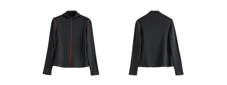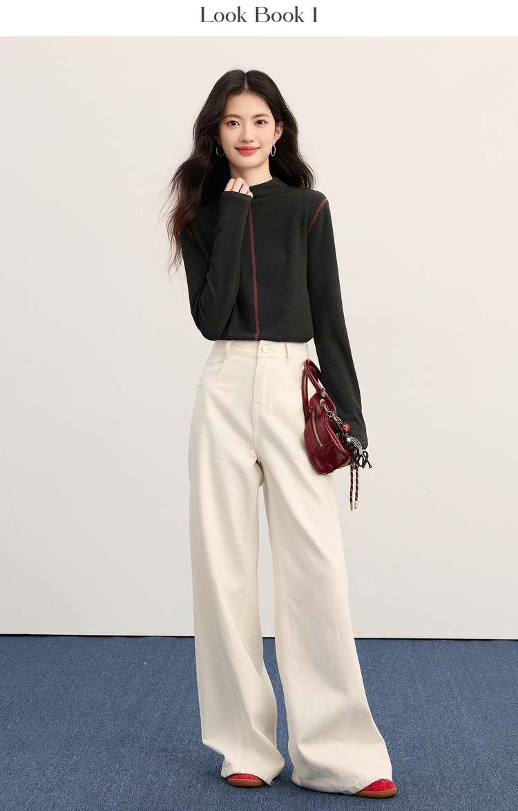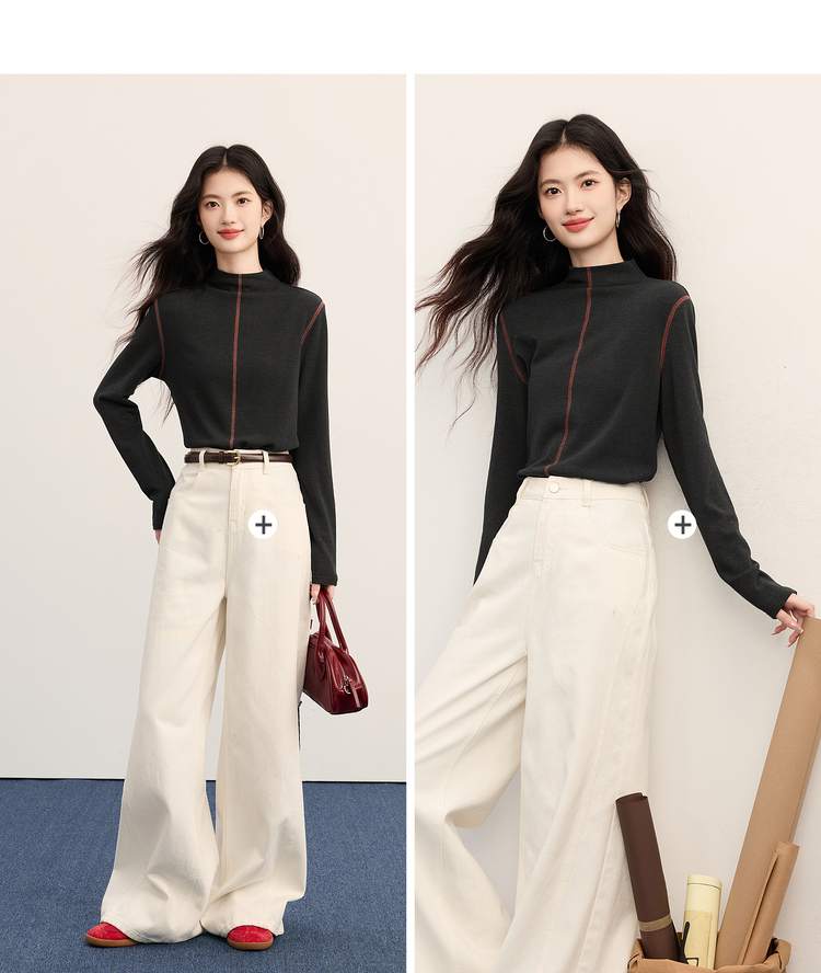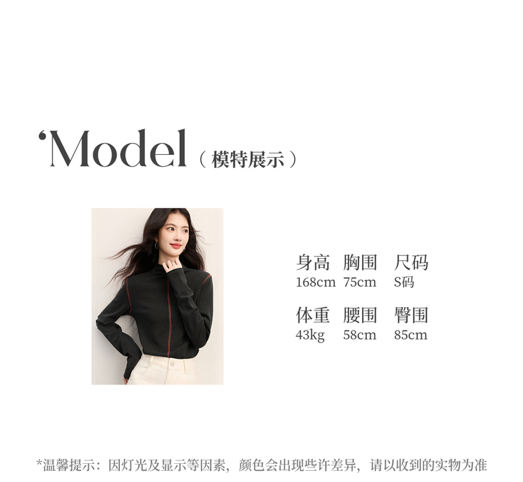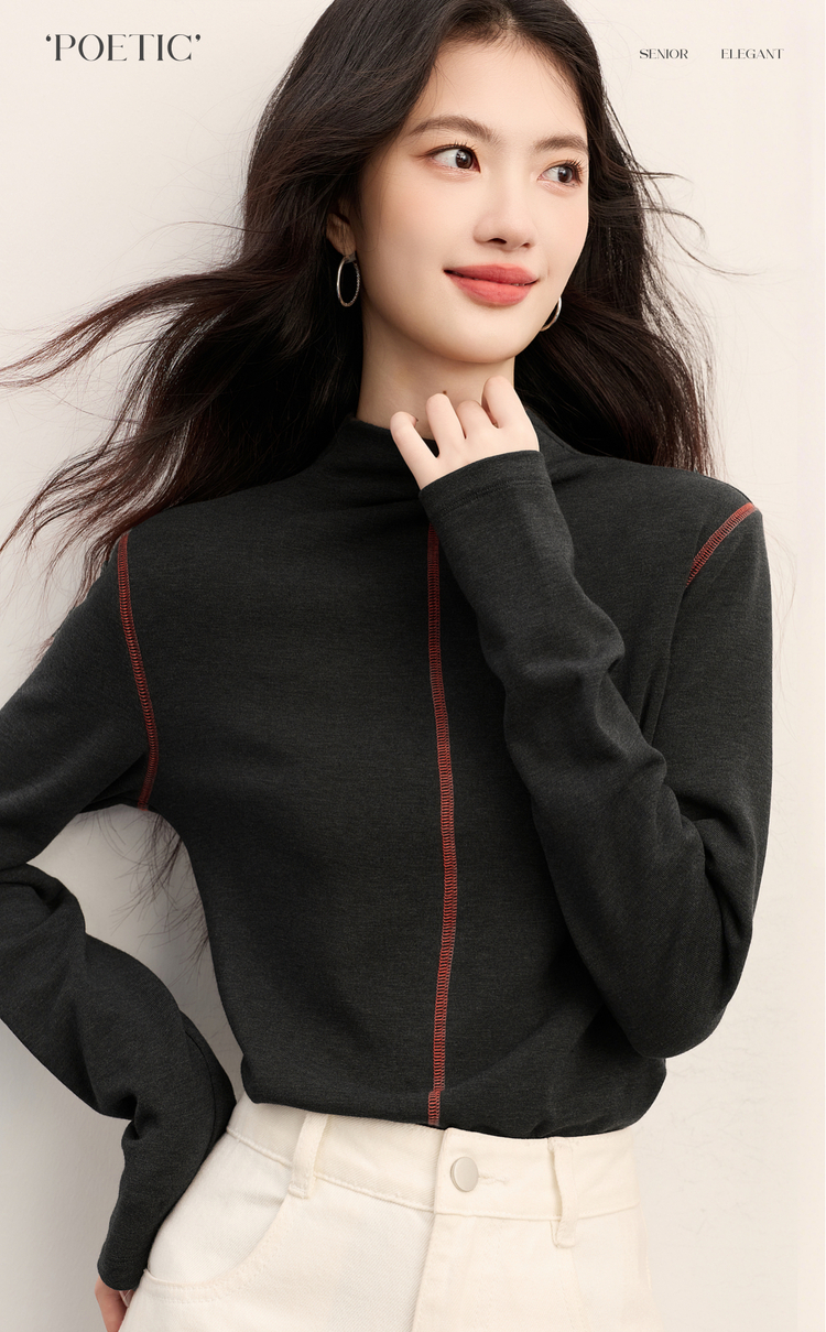 【11/26新品】熙世界明线撞色半高领打底衫女2025秋冬新款弹力保暖内搭T恤上衣