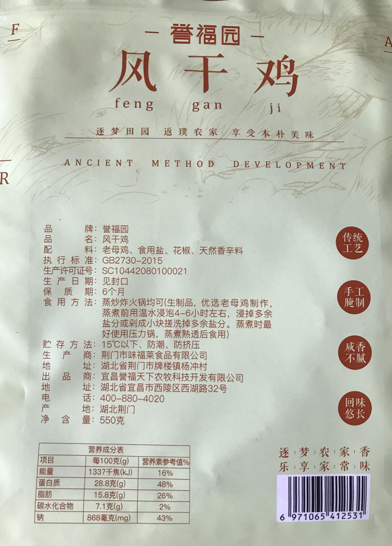 【严选】誉福园风干鸡腊鸡整只约500g(厂家直发)