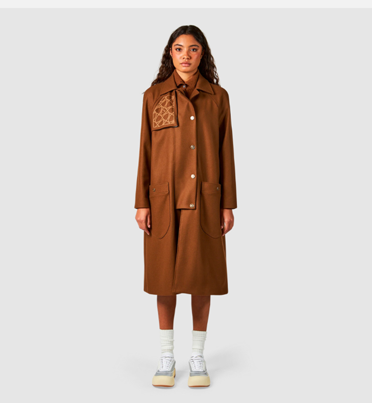 PHILIPPE MODEL 女士字母盾牌徽标印花混纺羊毛大衣 棕色 JATD MW22 37